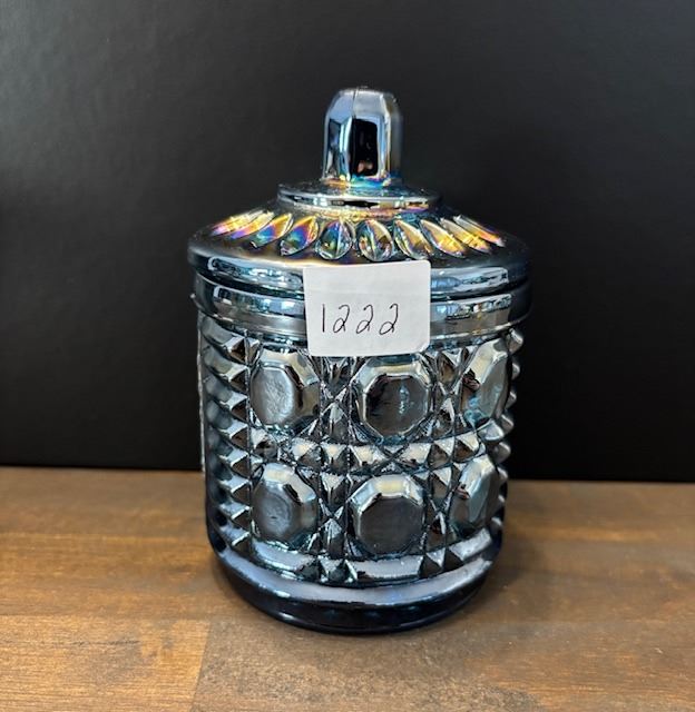 Lot 1222 Blue Carnival Glass Sugar Container with Lid