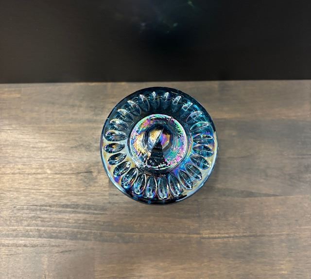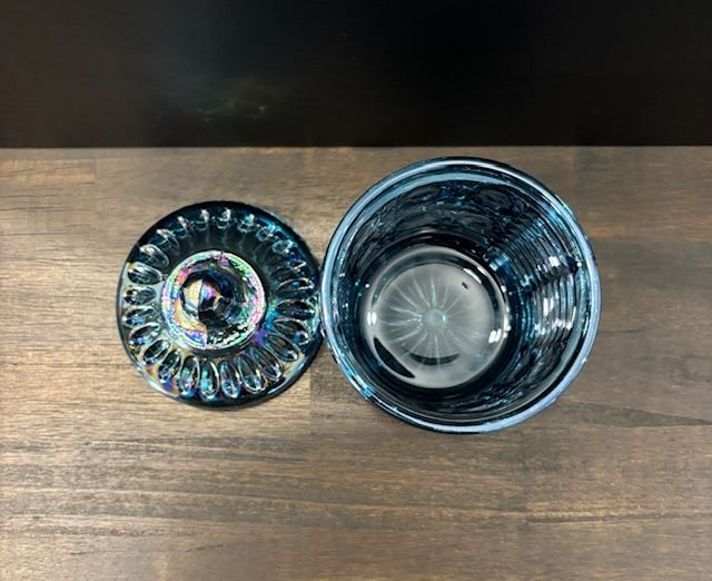 Blue Carnival Glass Sugar Container with Lid