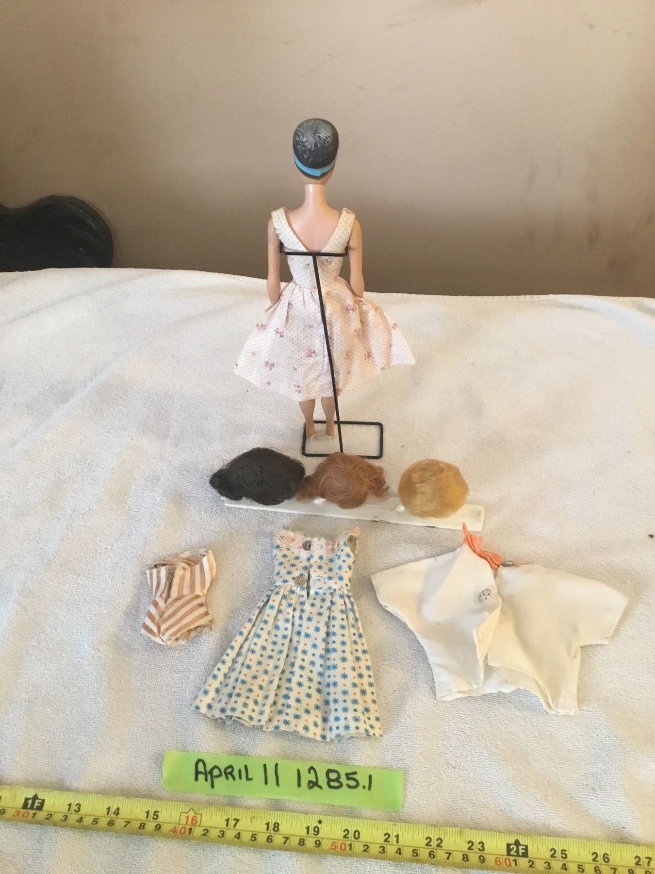 Lot 1285 Vintage 1962 mattel midge doll with wigs, dresses, swim suit and stand- very good condition