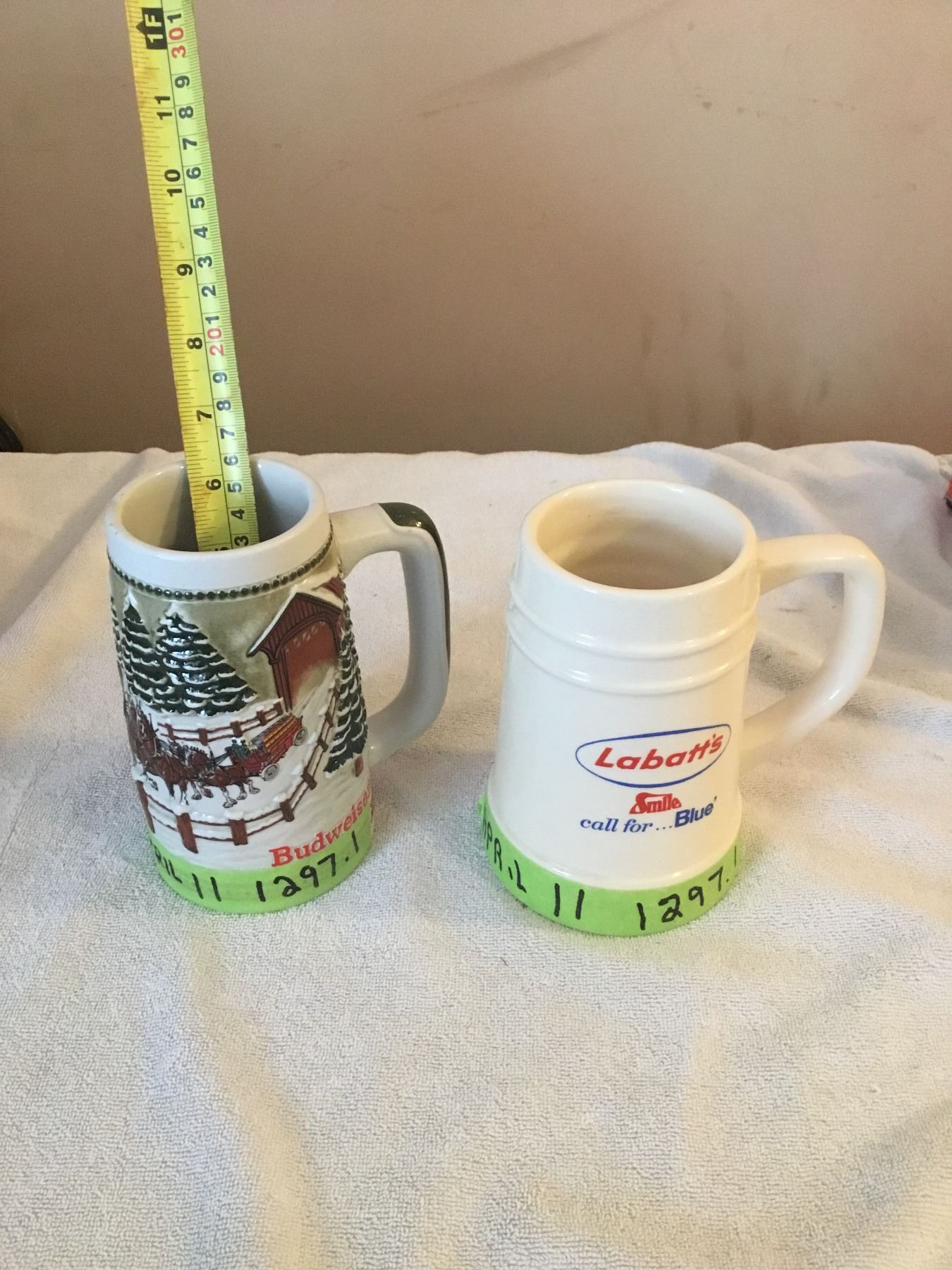 Collectable beer mugs- labatts and budwieser