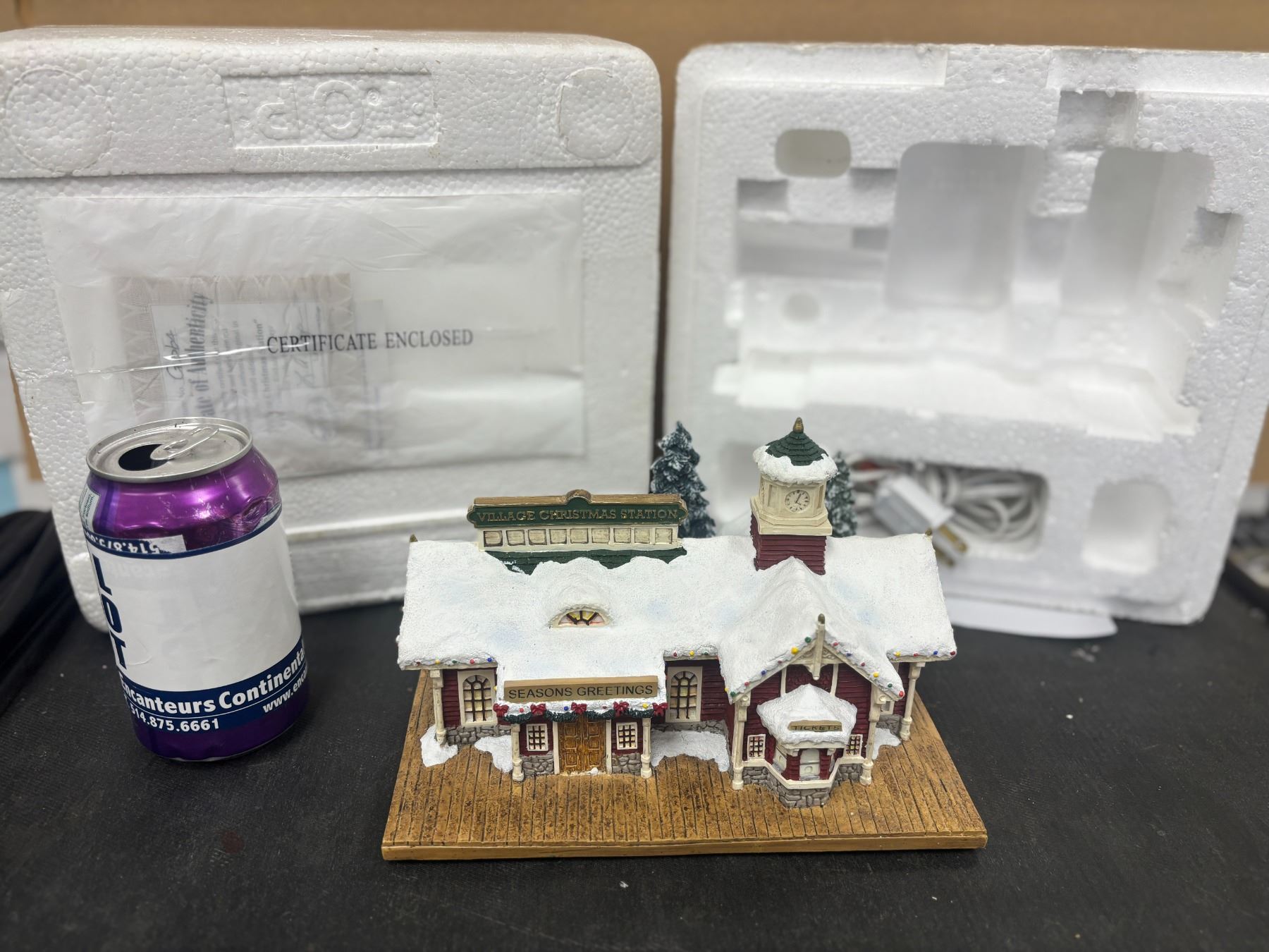 Lot 144 HAWTHORN VILLAGE "VILLAGE CHRISTMAS STATION" THOMAS KINKADE (WITH LIGHT)