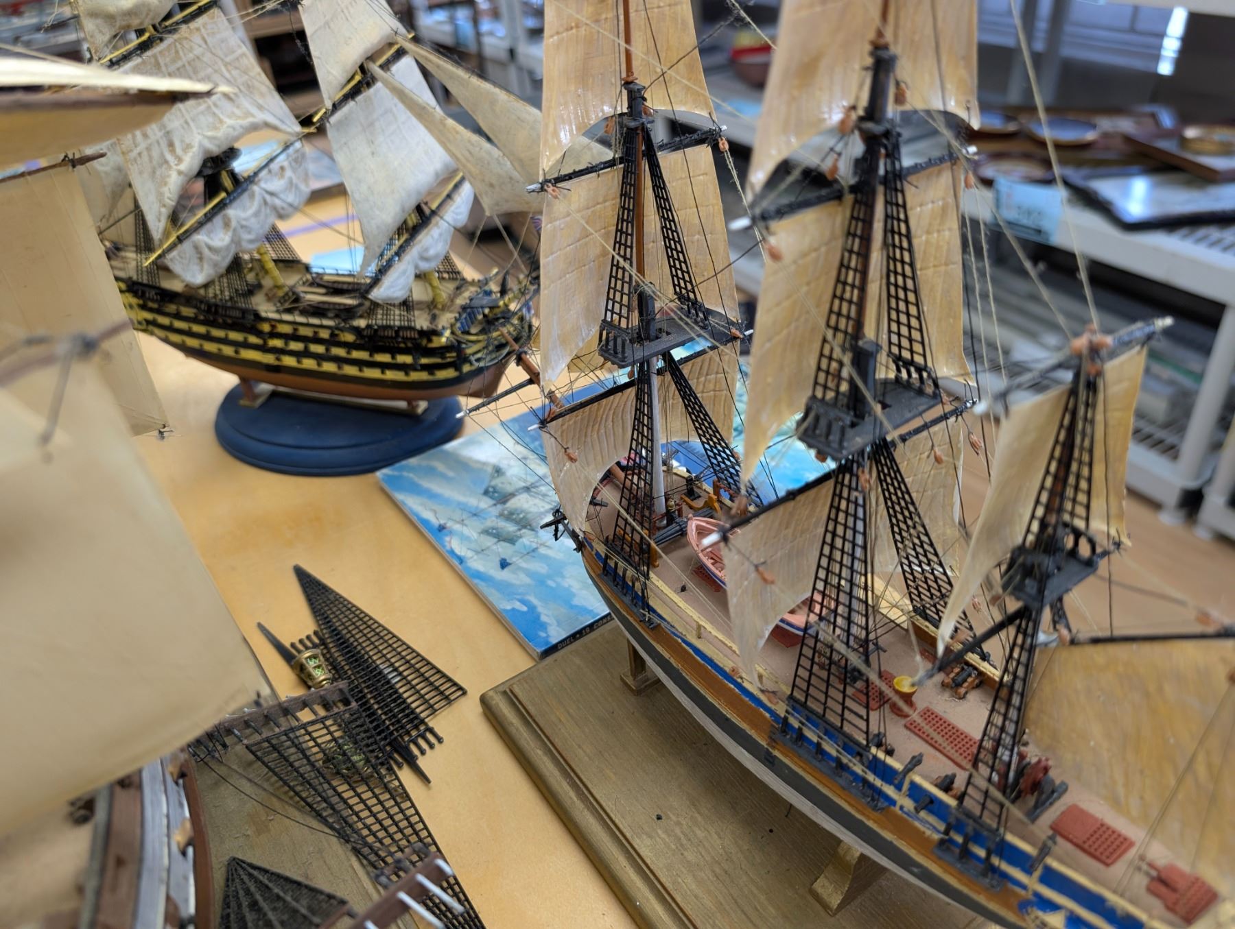 Lot 246 LOT: 4 MODEL FRIGATES (AS IS) + BOOK "CONSTITUTION VS GUERRIERE