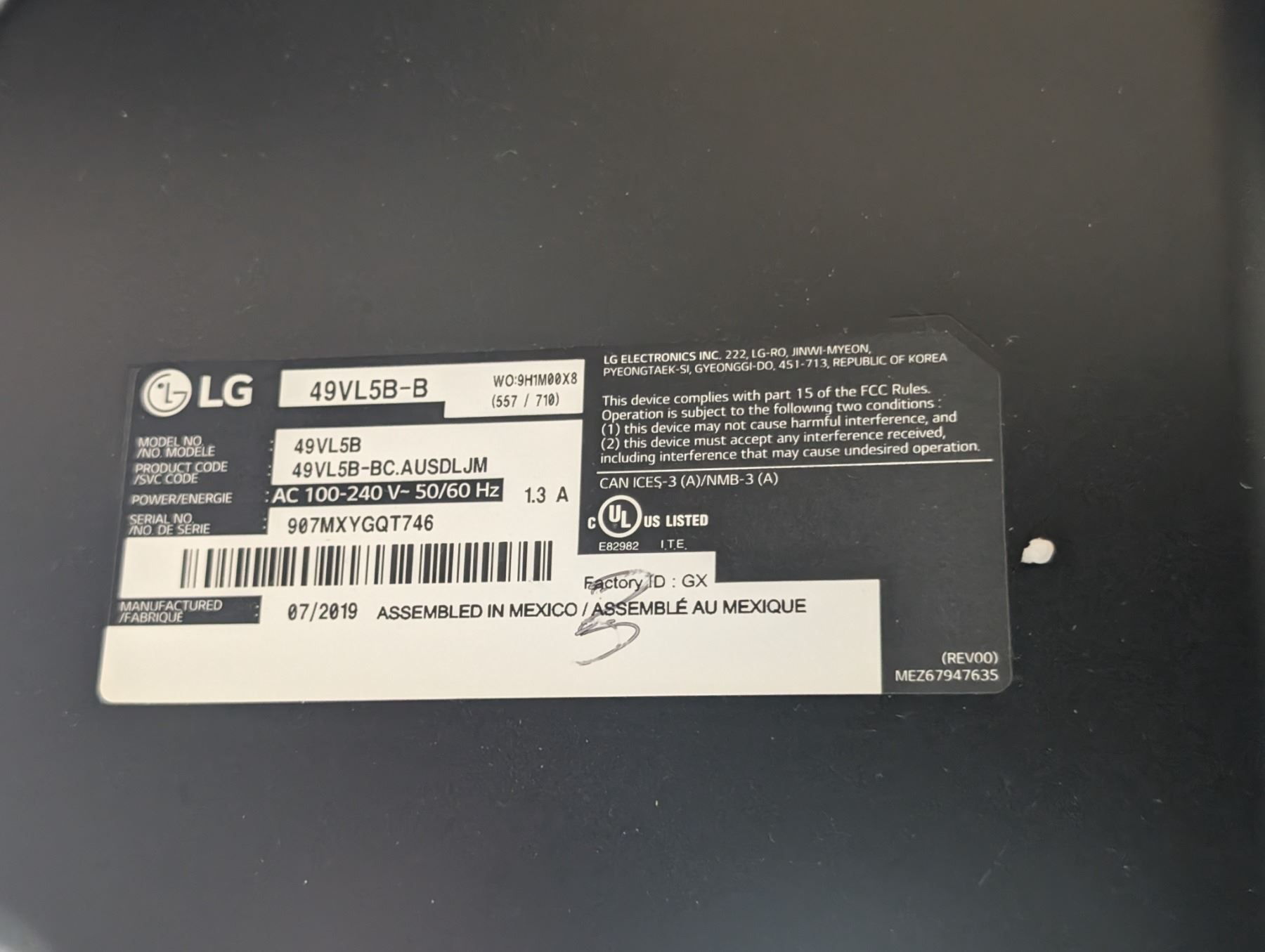 Lot 406 49" LG DIGITAL SIGNAGE MONITOR 49VL5PJ-A *NO REMOTE*