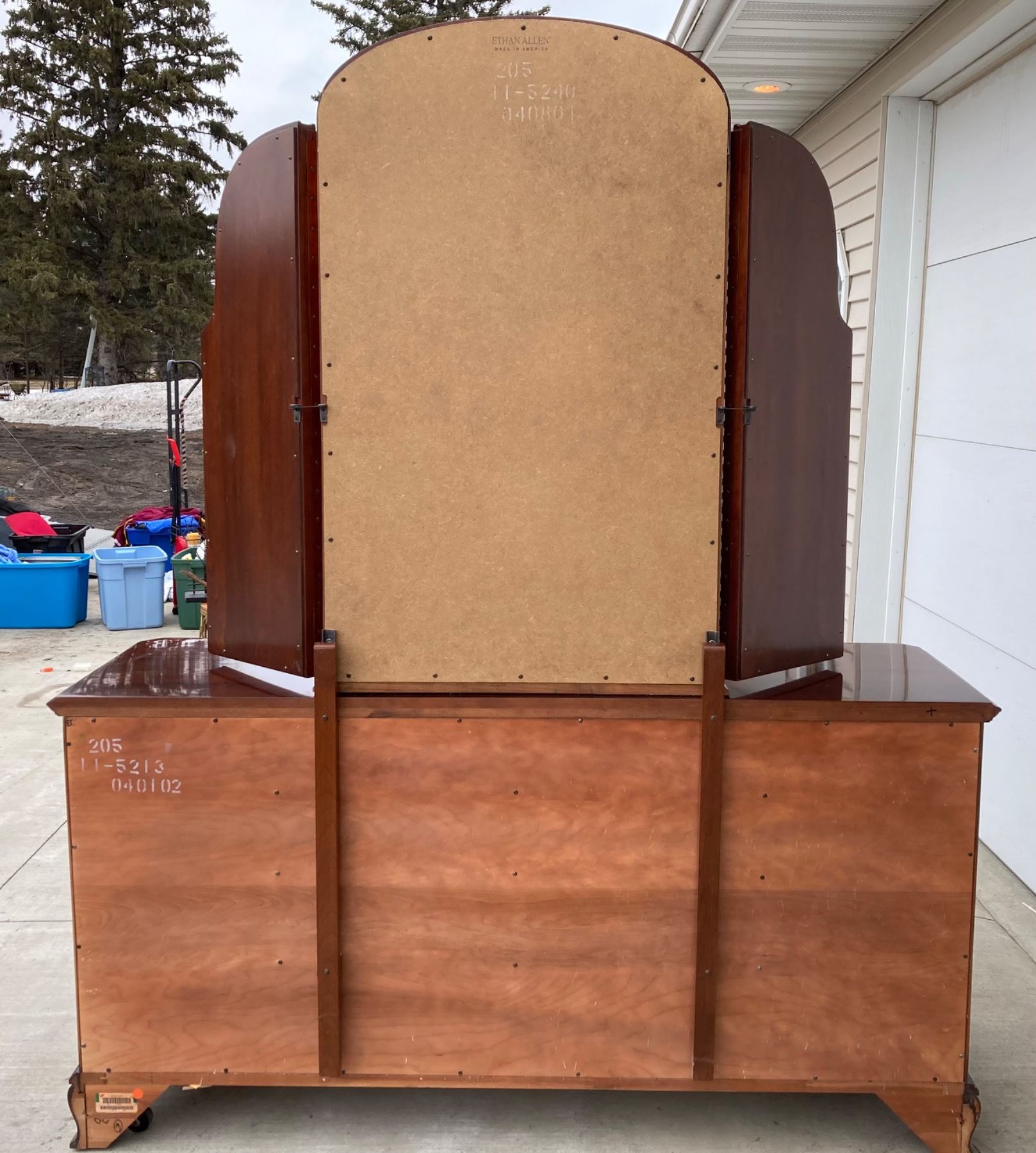 Lot 1 ETHAN ALLEN GEORGIAN COURT CHERRY DRESSER WITH A MATCHING TRI-FOLD MIRROR