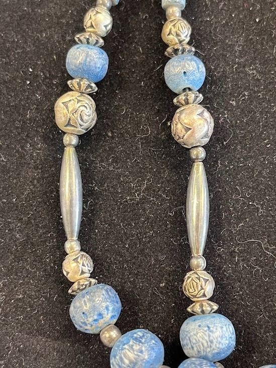STERLING/ PRECIOUS STONE BEADED NECKLACE