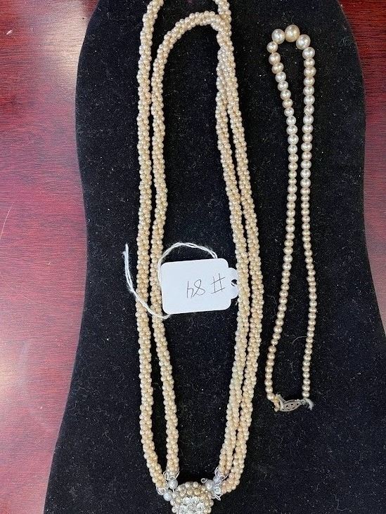 Lot 84J SET OF 2 PEARL/ PEARL TYPE NECKLACES WITH CUT GEMSTONES