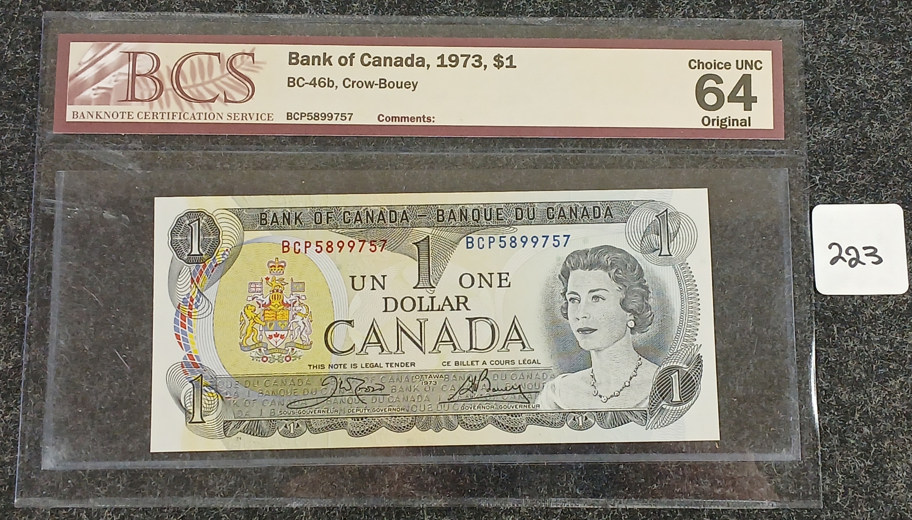 Lot 223 1973 CDN $1 BANKNOTE - BCS GRADED