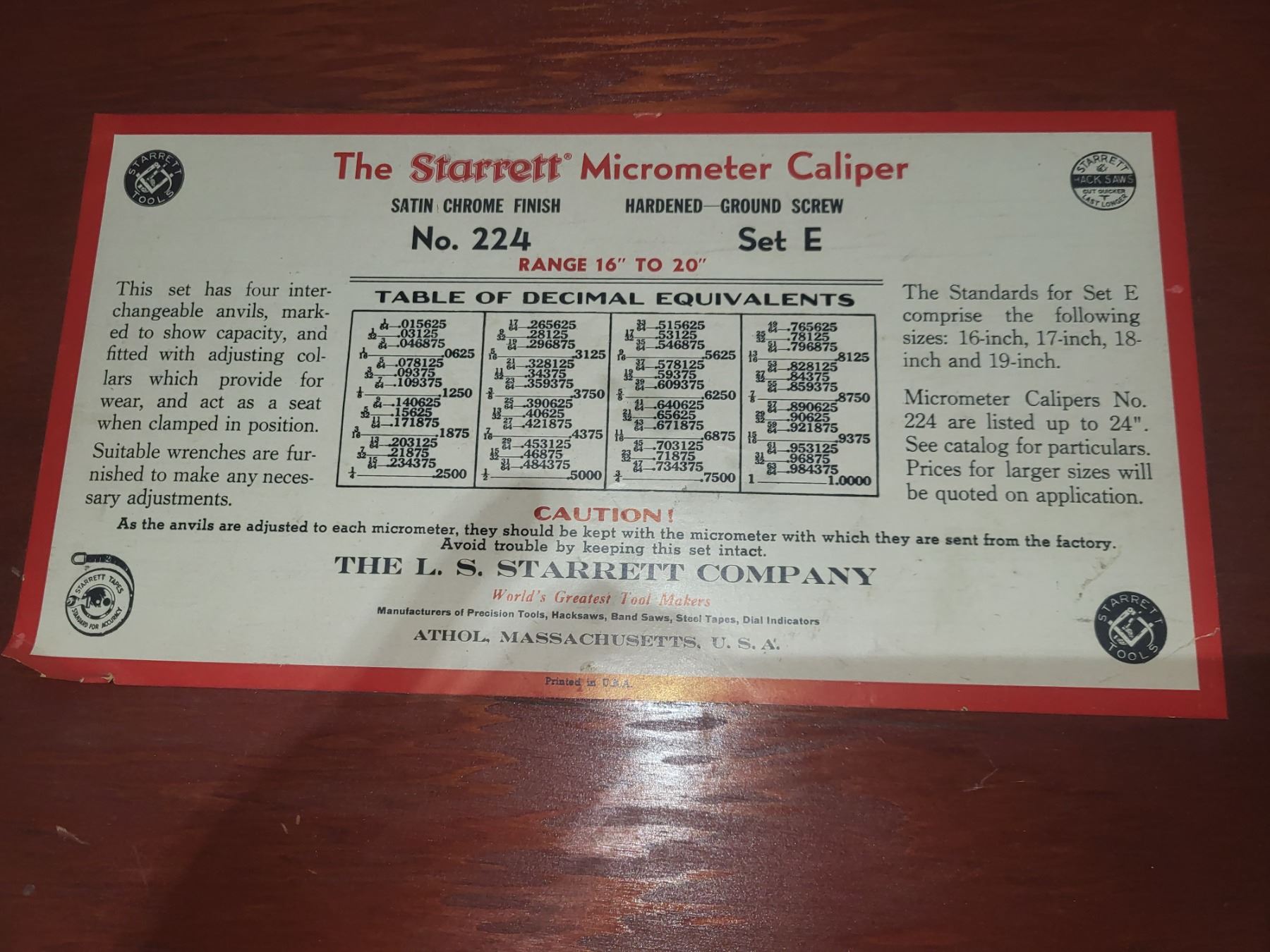 Lot 301 Starrett No.224 Micrometer 16" to 20"