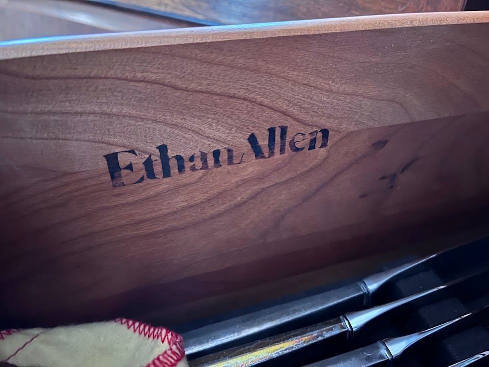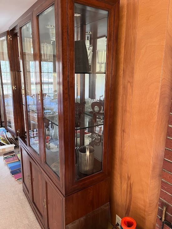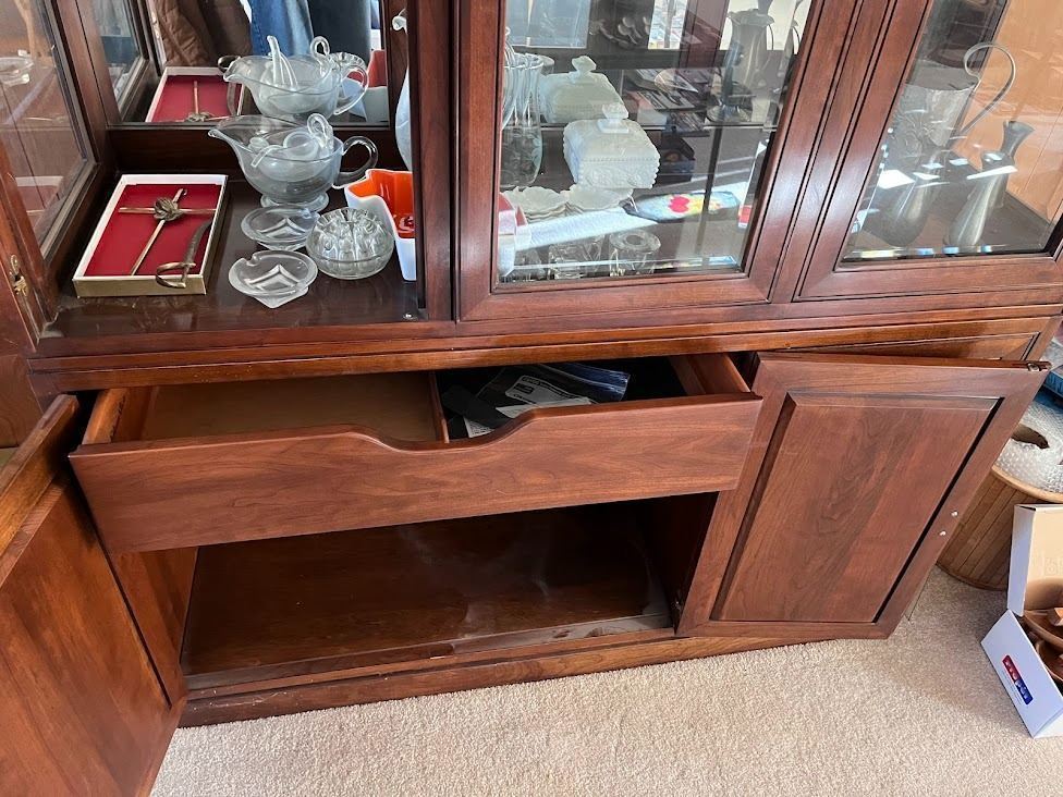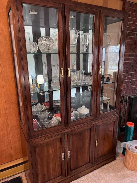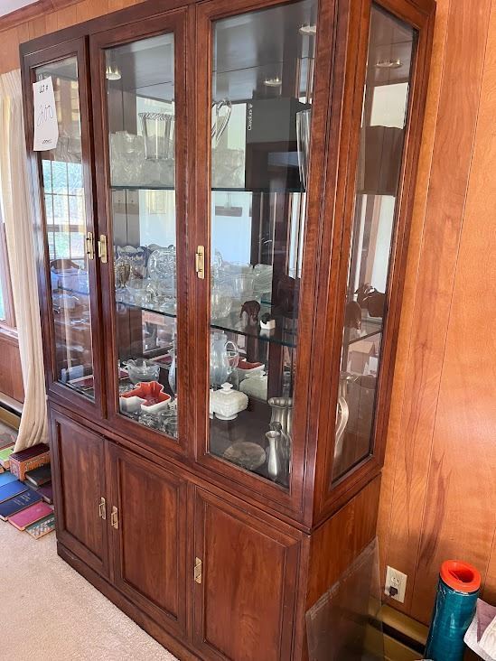 ETHAN ALLEN CHERRY CHINA CABINET WITH BEVELED GLASS