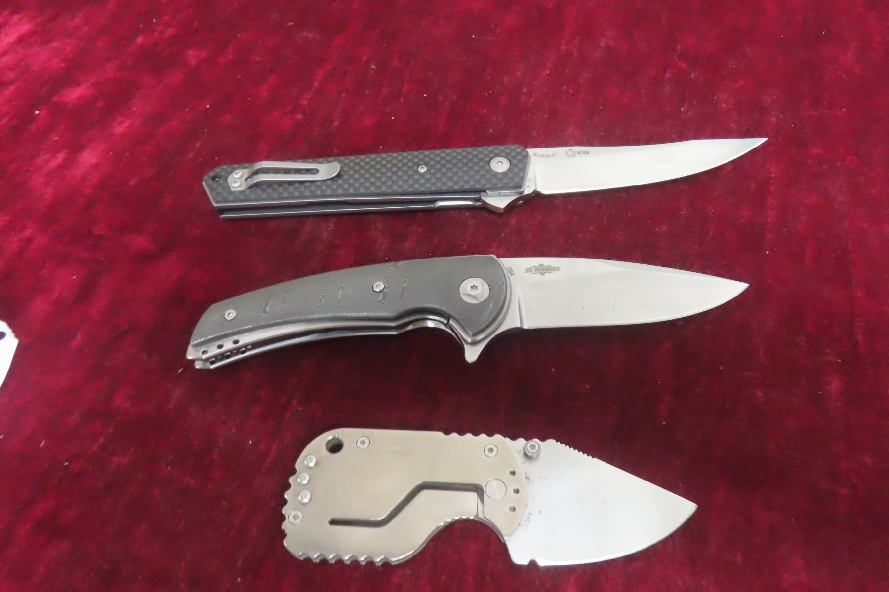 Lot 181 Burnley VG-10 Folding Knife 8½", Les Voornes 084 Folding Knife 7½" and 440-C Folding Knife 4½"