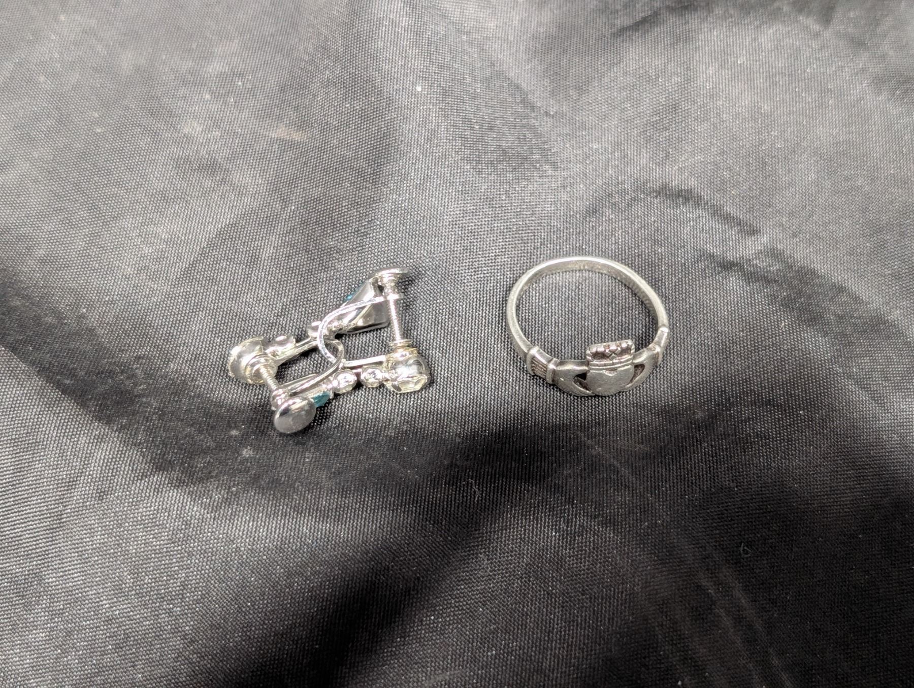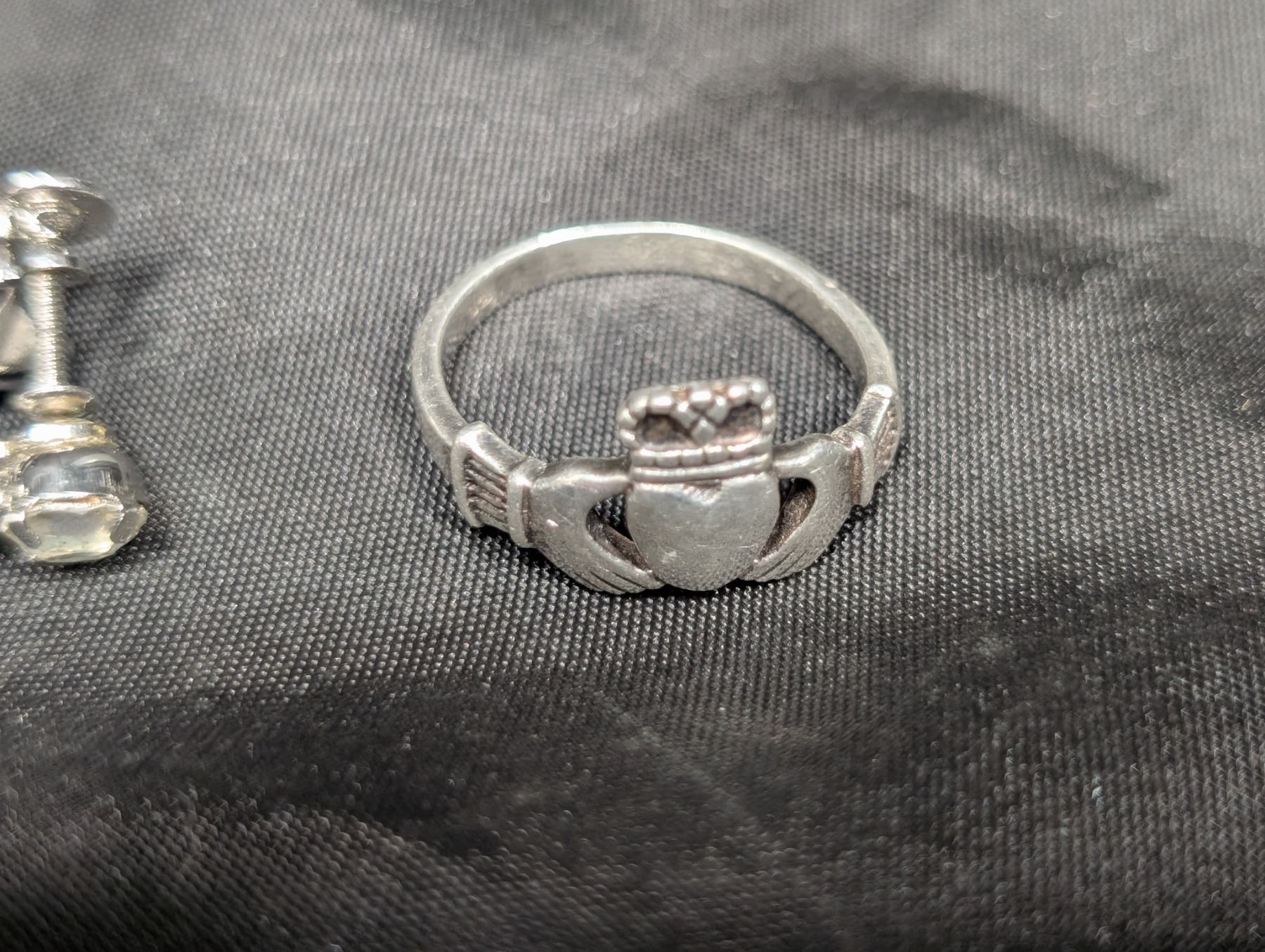 Hand Heart Design 9.25 Silver Ring and Earrings (no Marking on Earrings)