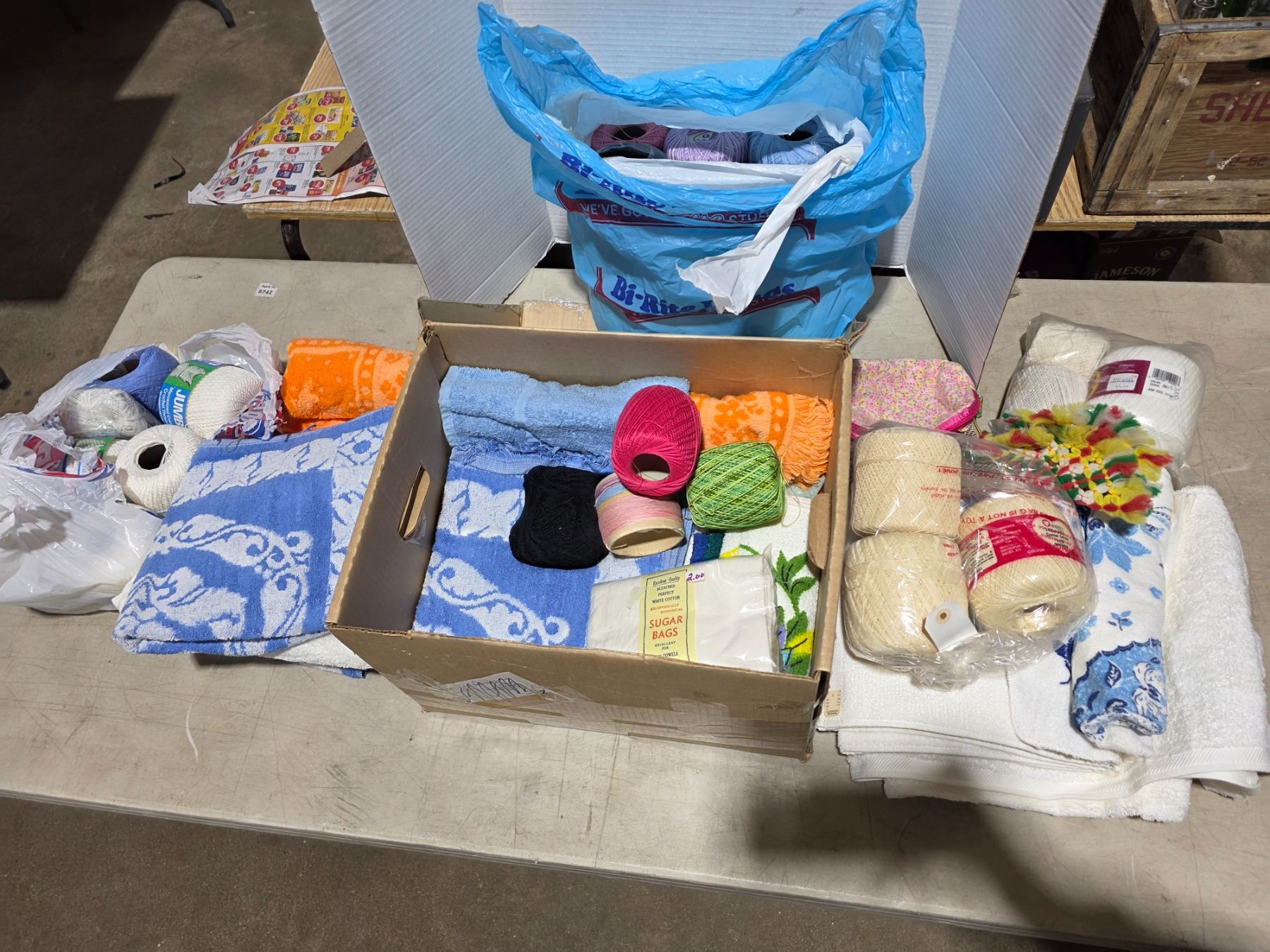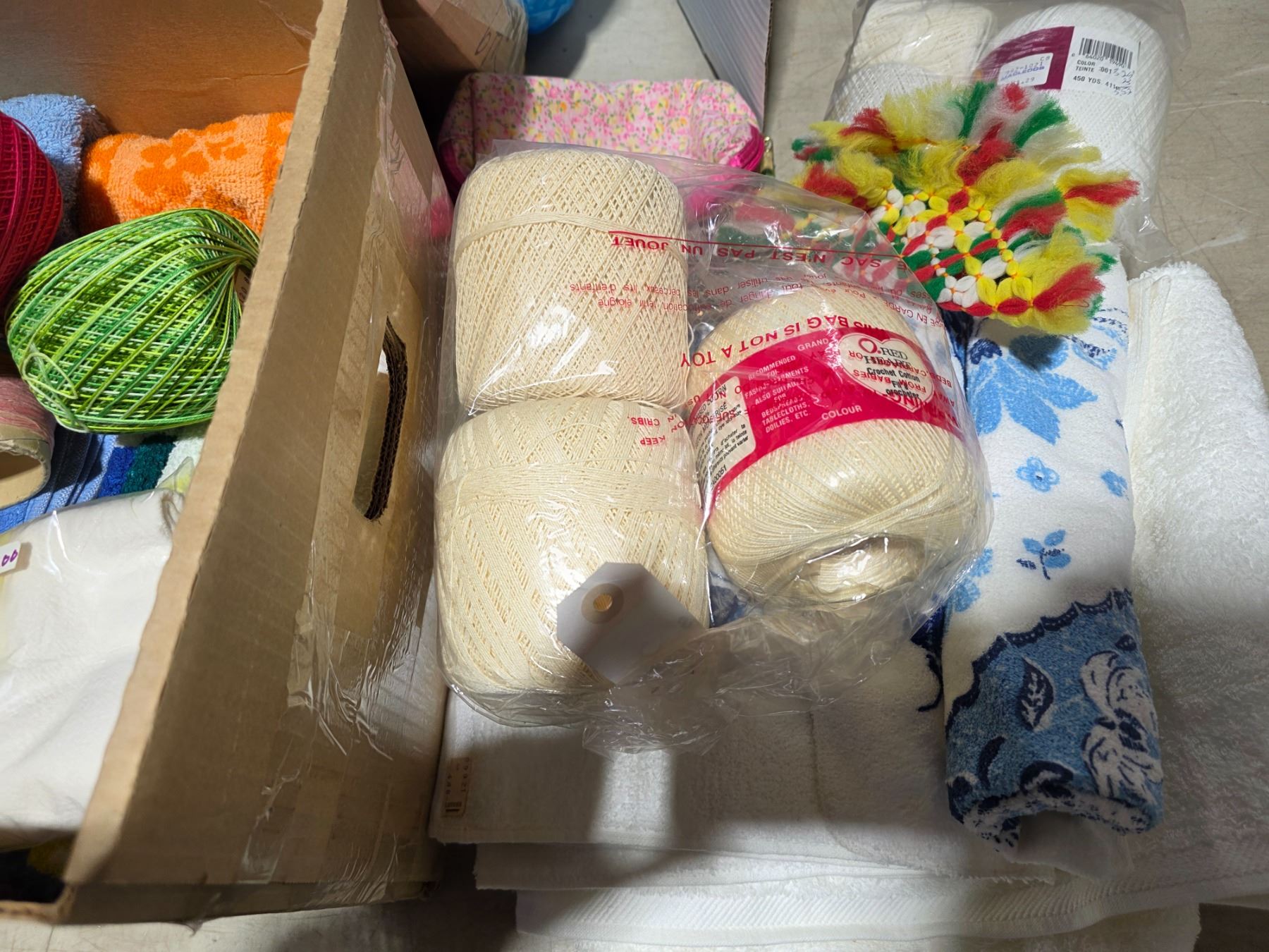 Lot 1037 Duffel bag of yarn, cloth and towels