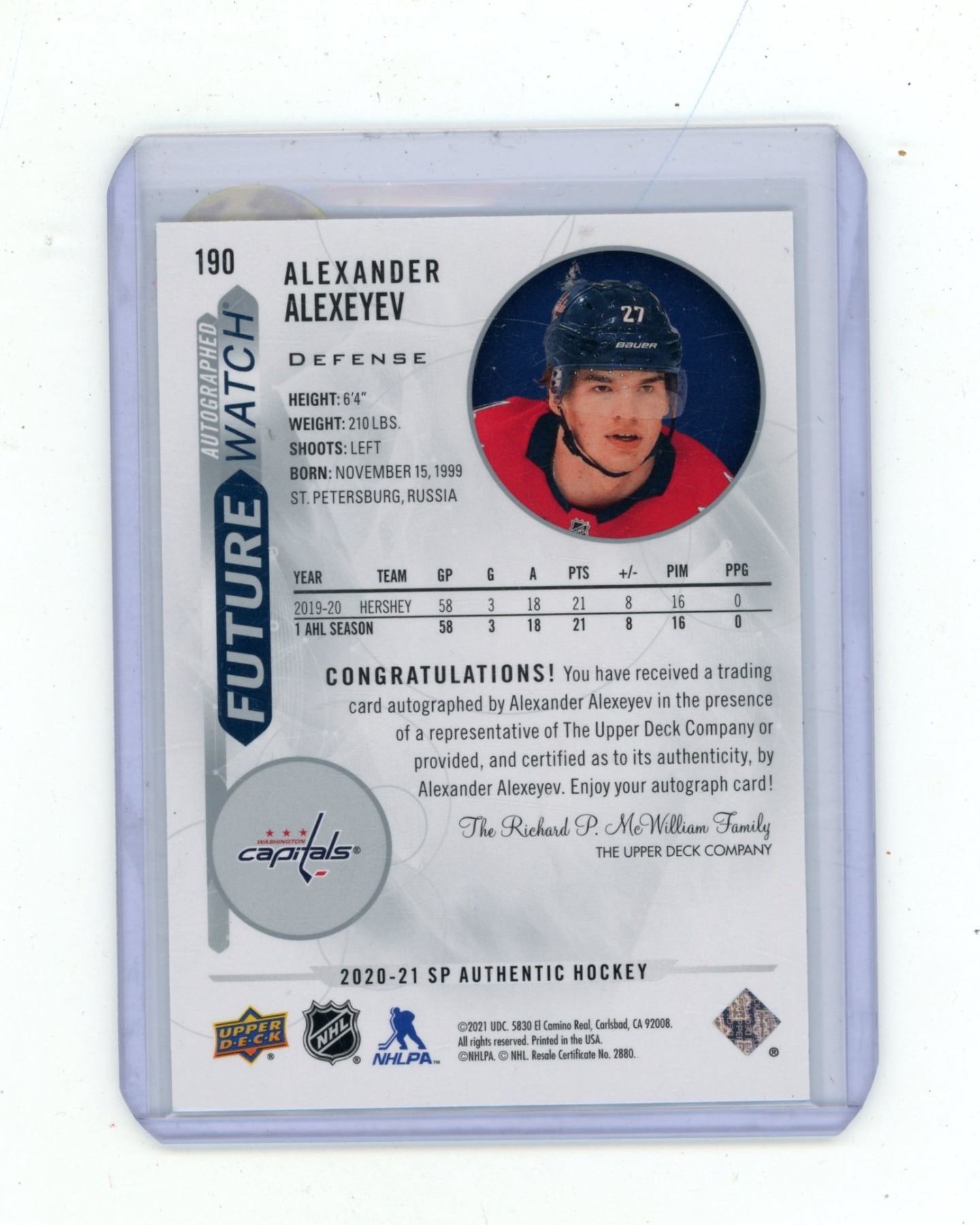 2020-21 SP Authentic Hockey - Alexander Alexeyev - Autographed Future Watch Rookie Card - 190/999.