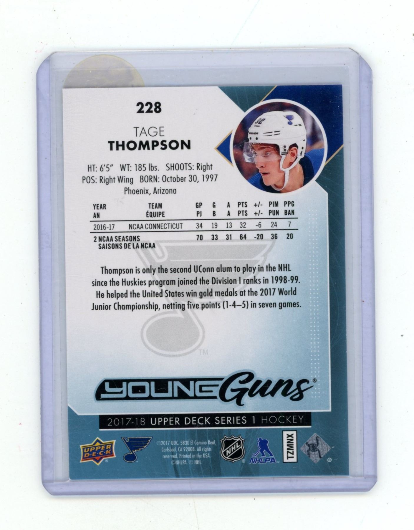 2017-18 Upper Deck Series 1 Hockey - Tage Thompson - Young Guns - 228.
