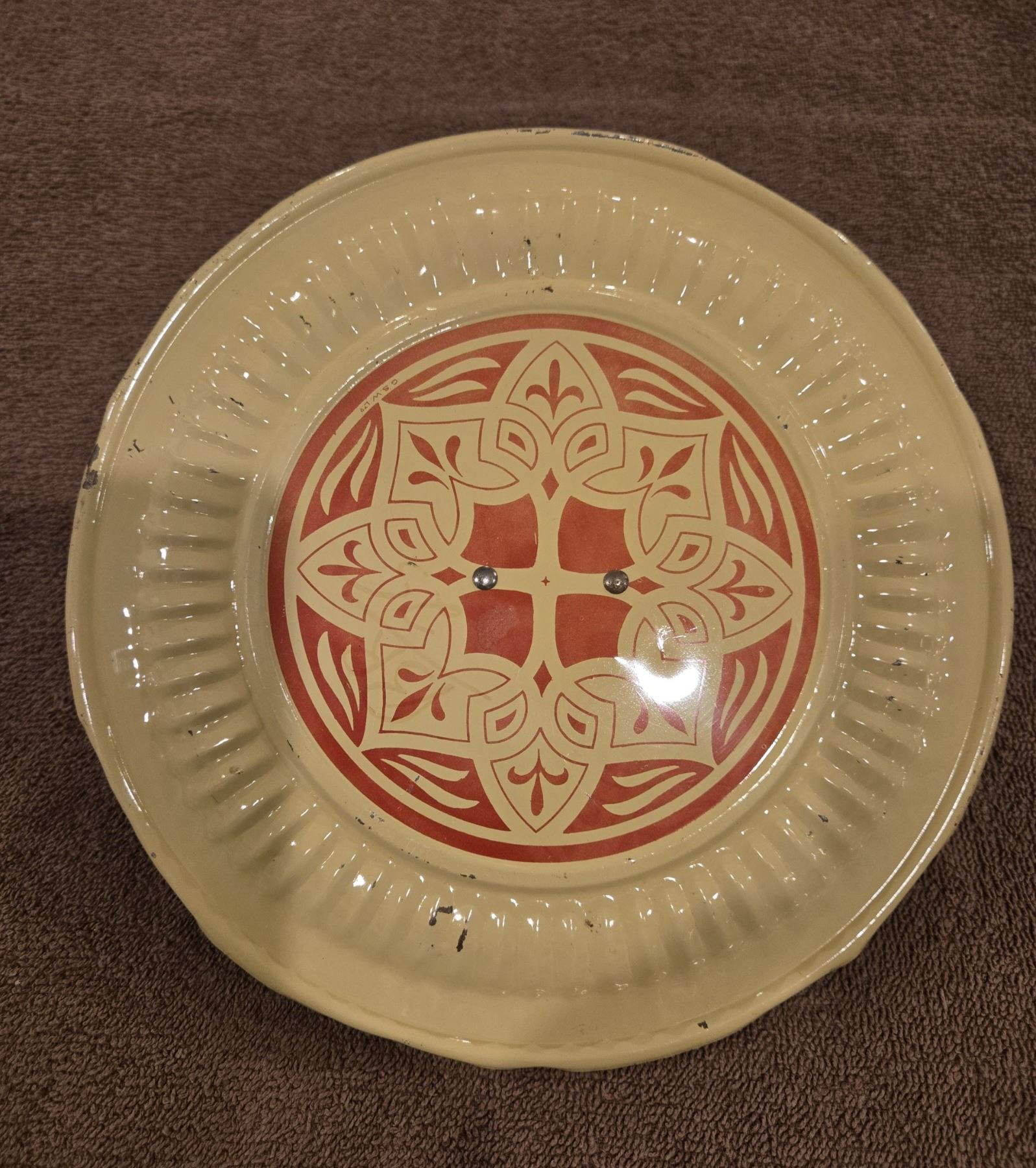 1111 - Vintage metal chimney flue designed to cover a wall opening for a chimney. C.S.W. Ltd. 8 1/2". Nice cond.