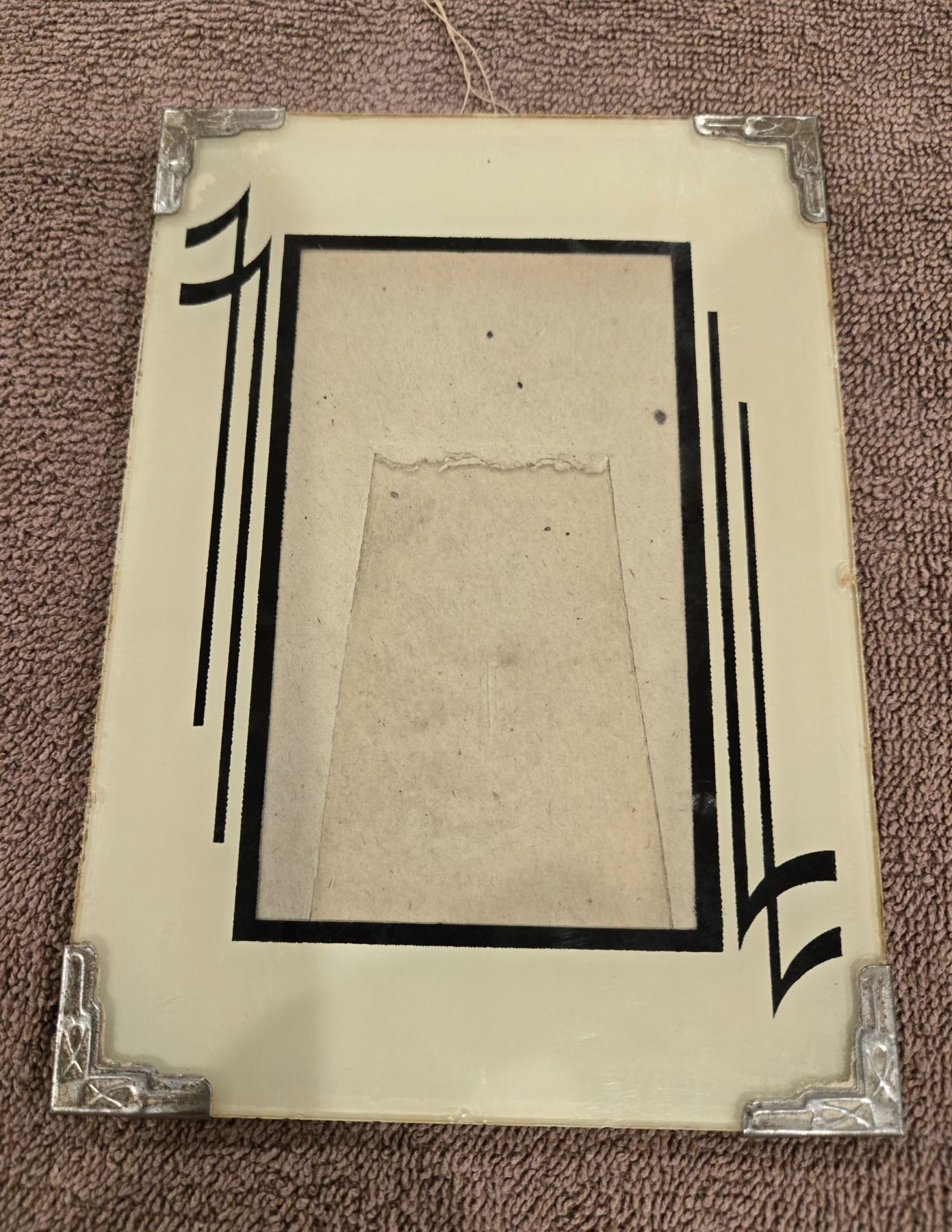 1116 - Art Deco era reverse-painted glass photo frame. Produced in the 1920s, 1930s. 5" x 7" frame.