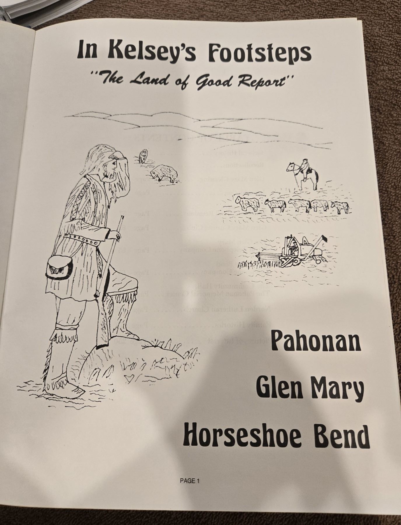 1119 - Sasatchewan history - In Kelsey's Footsteps "The Land of Good Report". History of Pahonan, Glen Mary and Horseshoe Bend. Printed in 1980, 272 pages