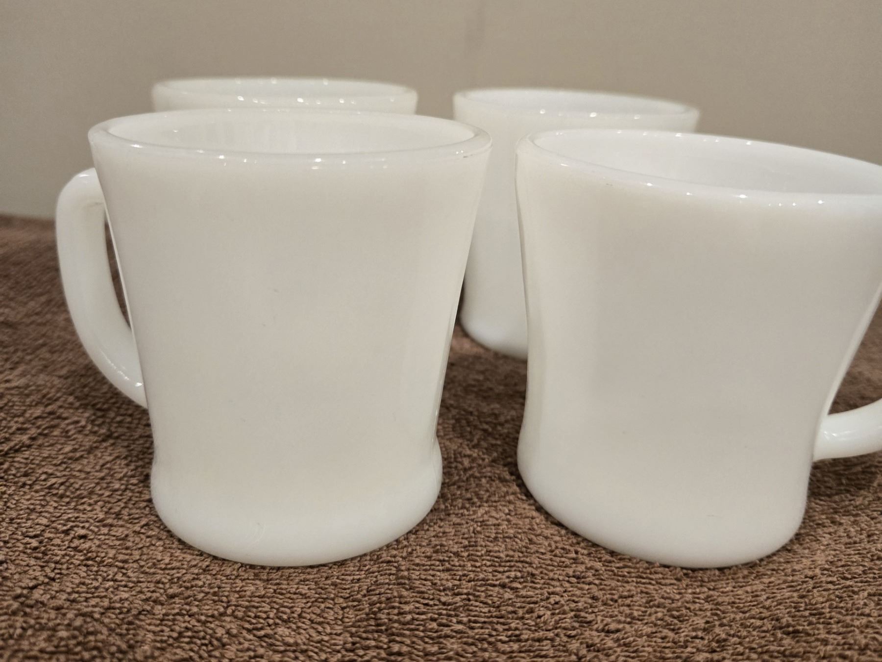 Lot 1120 1120-Lot of 4 vintage Fire King Anchor Hocking coffee mugs - white milk glass, D handles. Nice - no