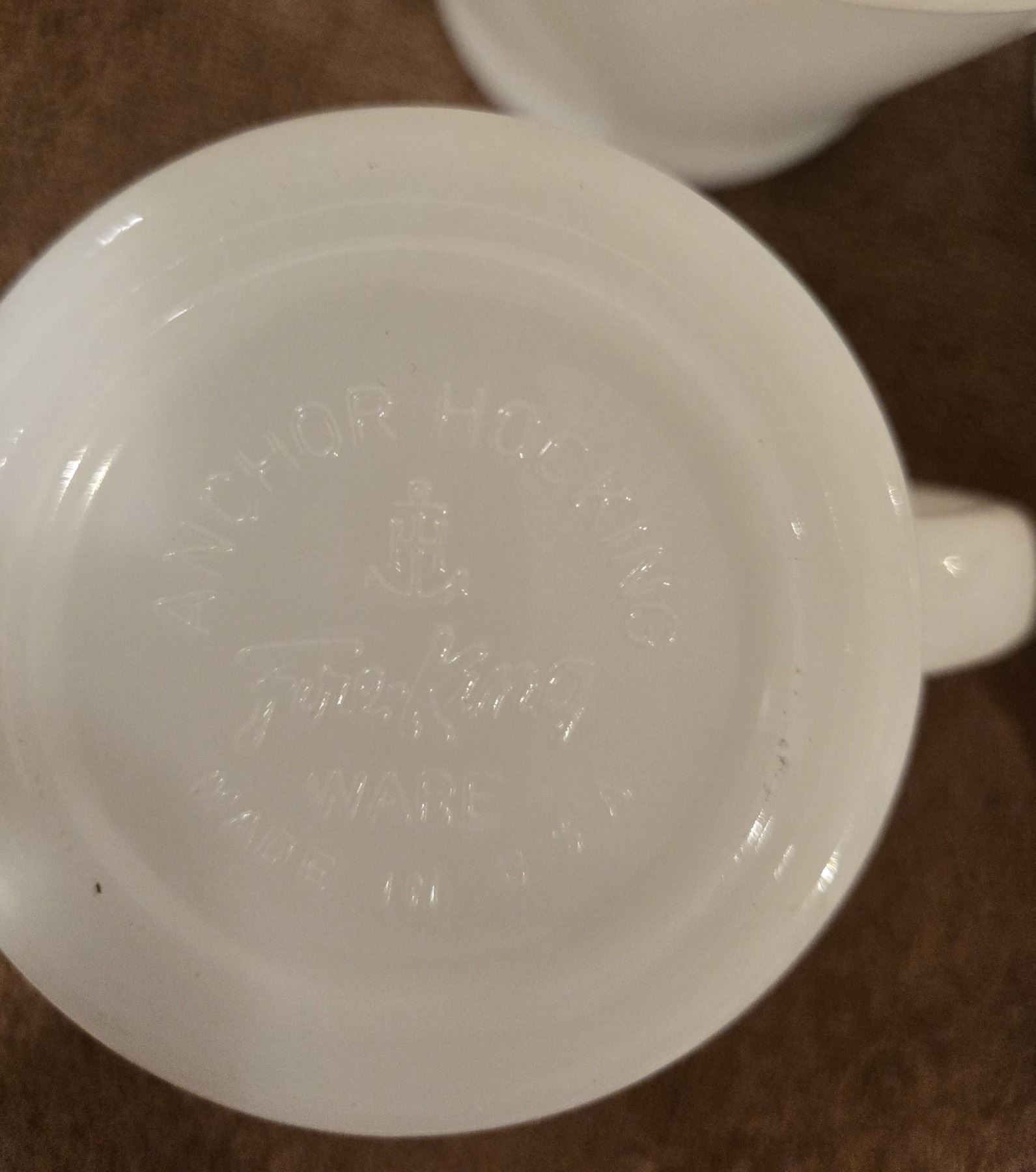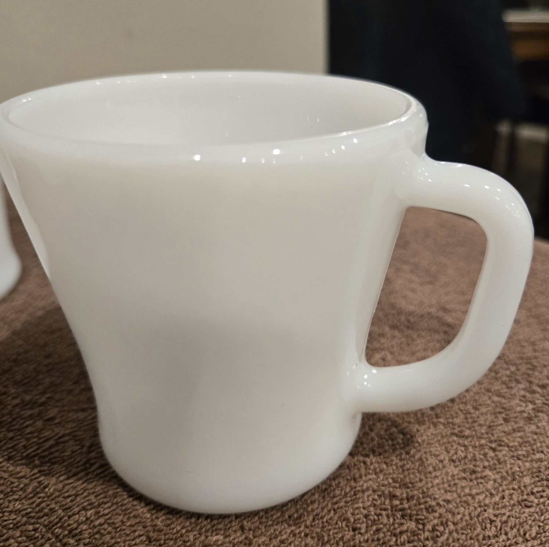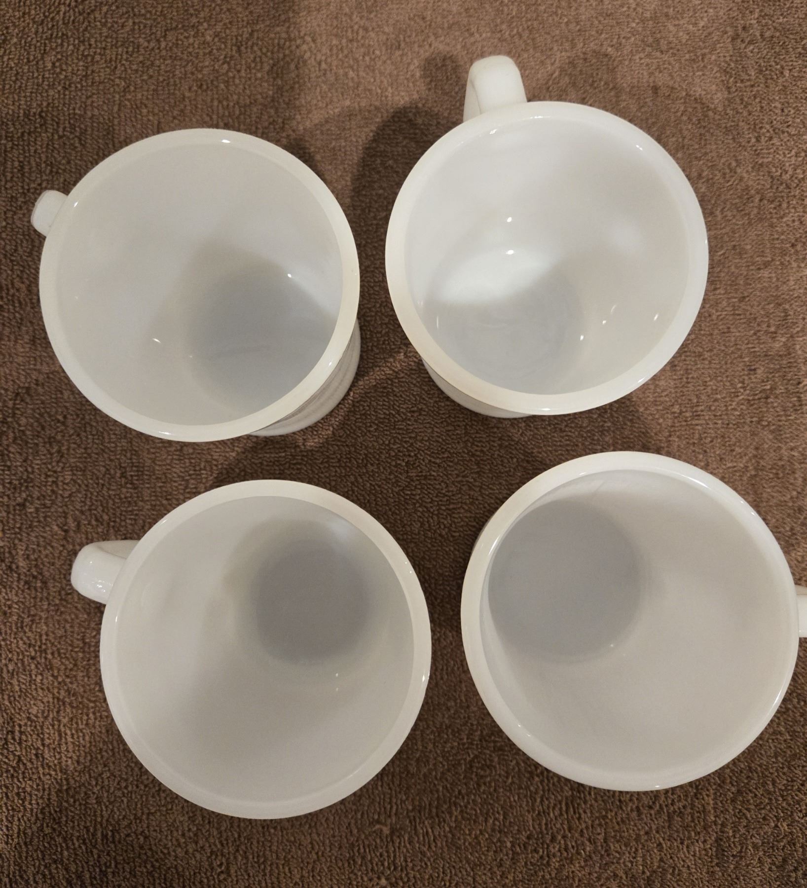 1120-Lot of 4 vintage Fire King Anchor Hocking coffee mugs - white milk glass, D handles. Nice - no stains