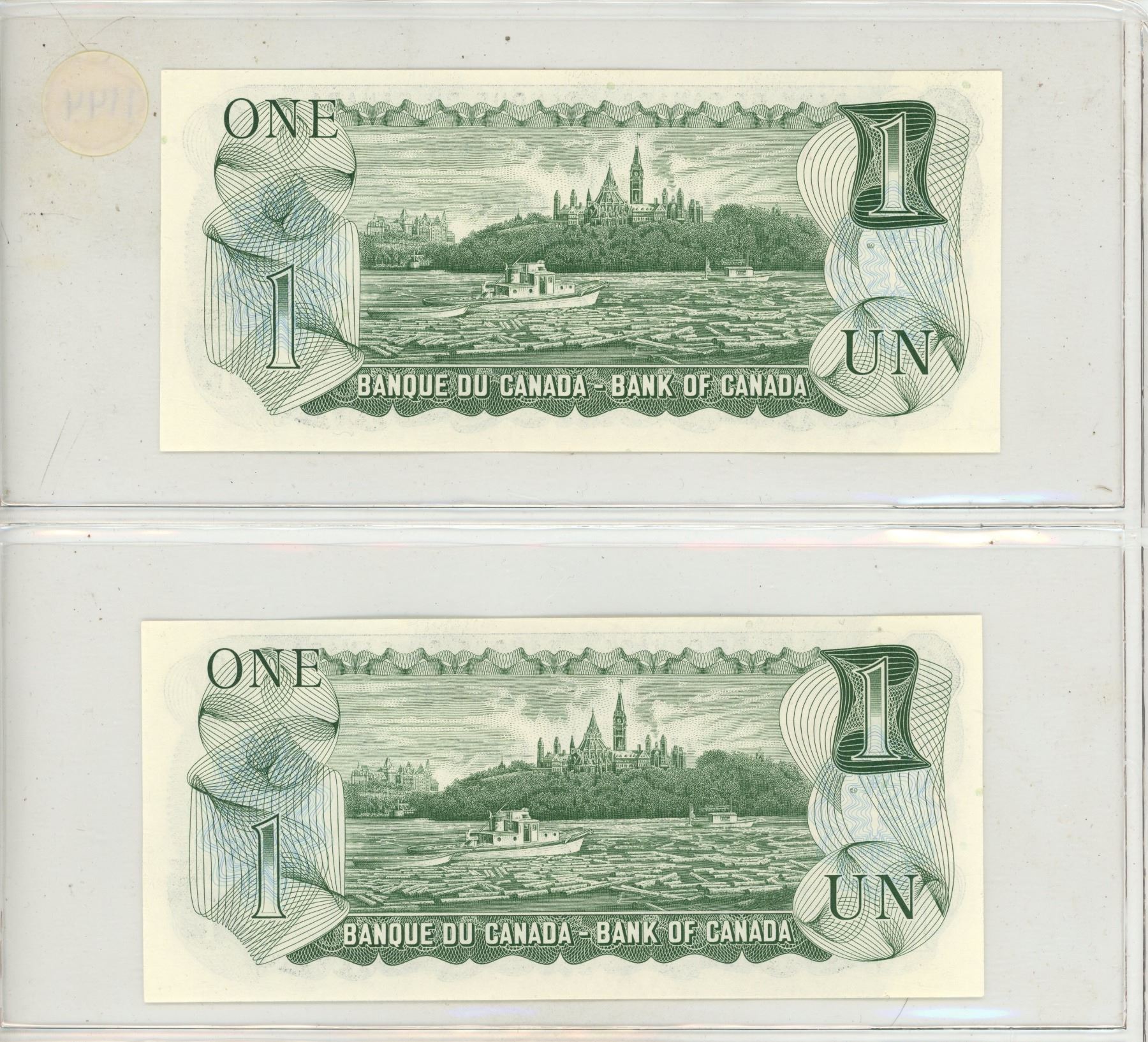 1973 2 Canadian One Dollar Bank Notes In Series