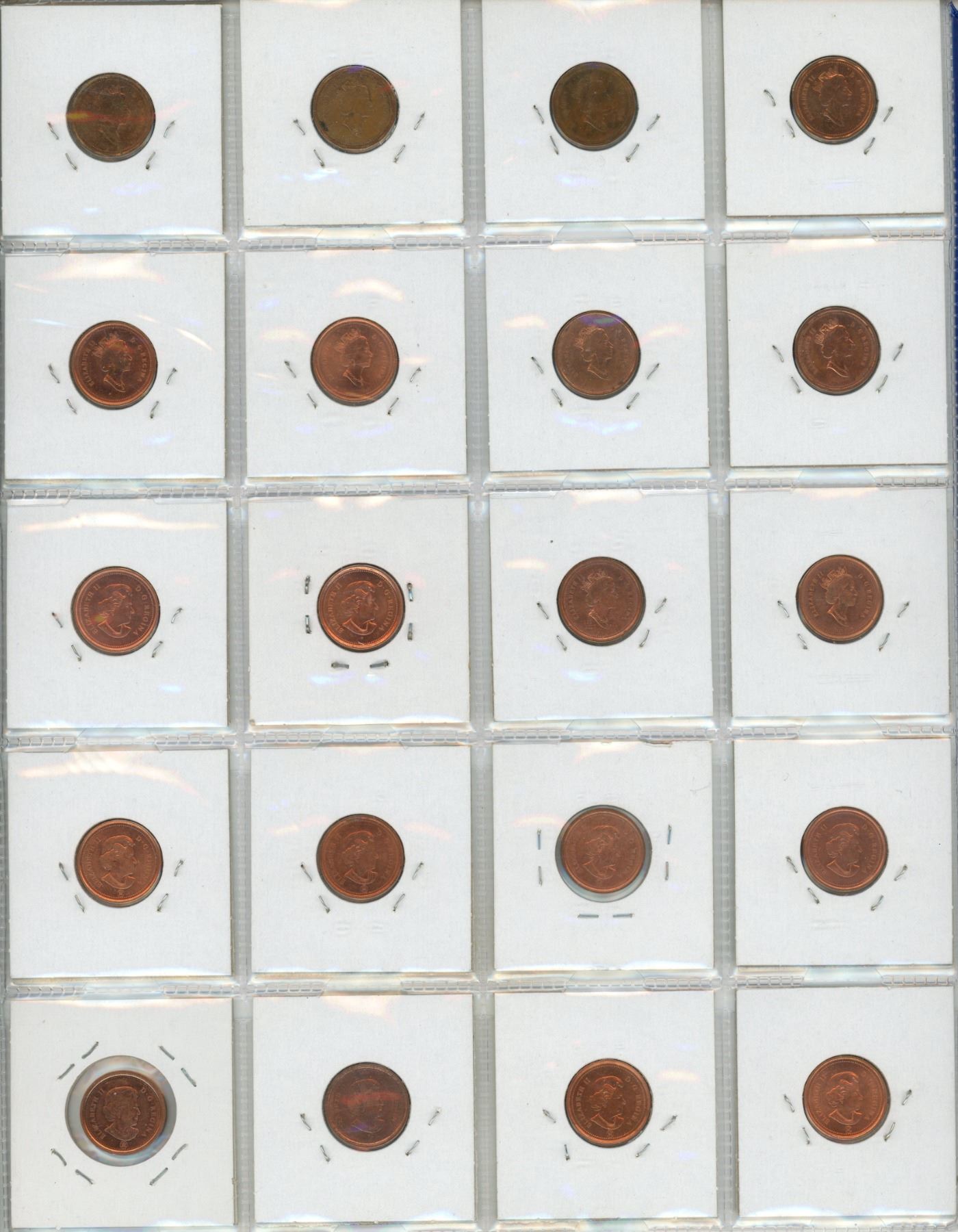1993-2012 UNC Sheet Of Canadian Small Cents - 20 Coins