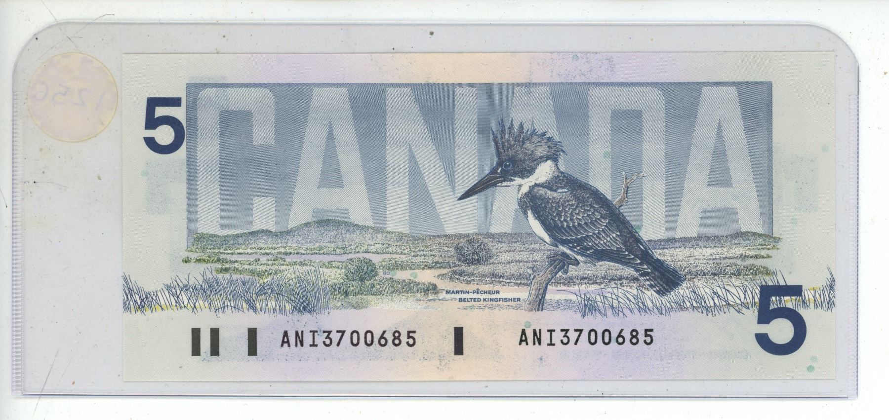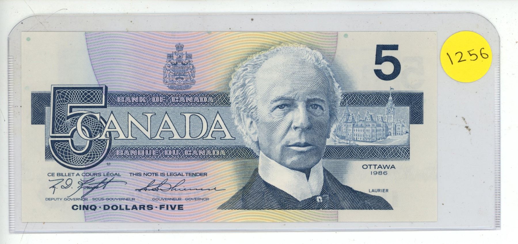 Lot 1256 1986 UNC Bank Of Canada Five Dollar Bank Note