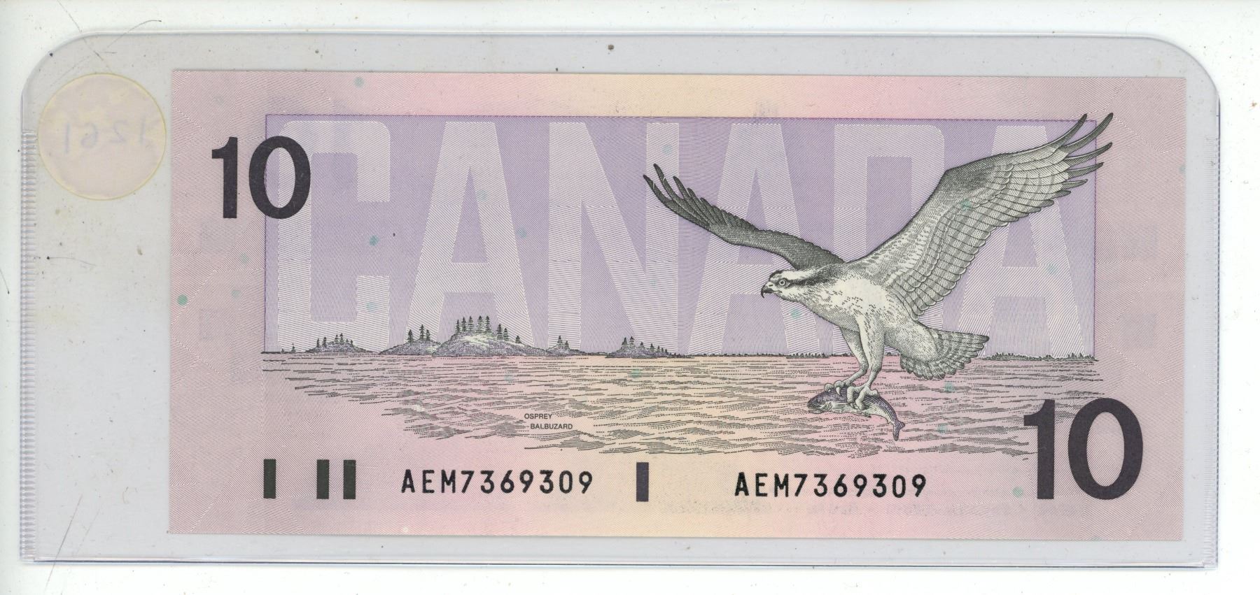 1989 UNC Bank Of Canada Ten Dollar Bank Note