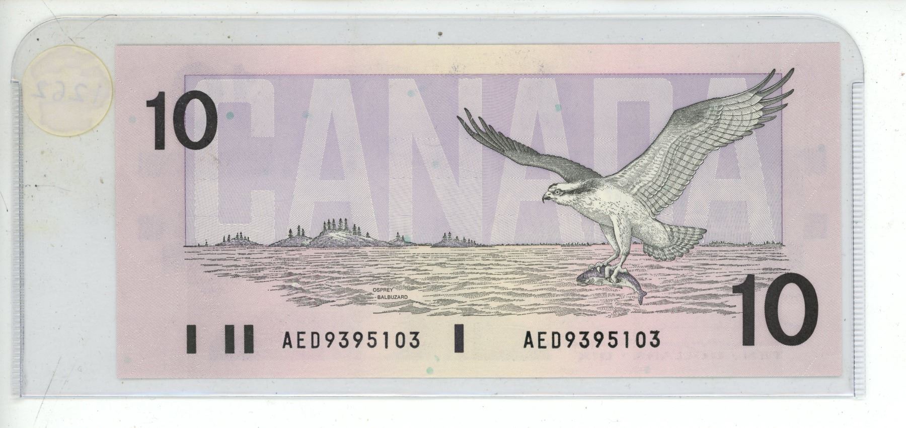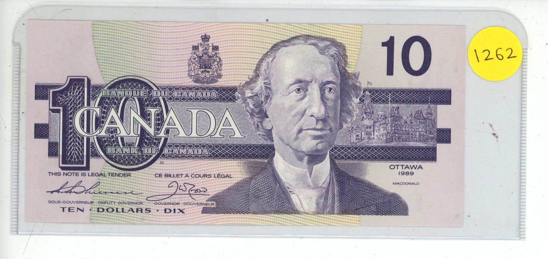 Lot 1262 1989 UNC Bank Of Canada Ten Dollar Bank Note