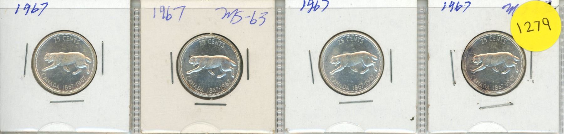 Lot 1279 1967 x 4 Canadian Twenty Five Cents