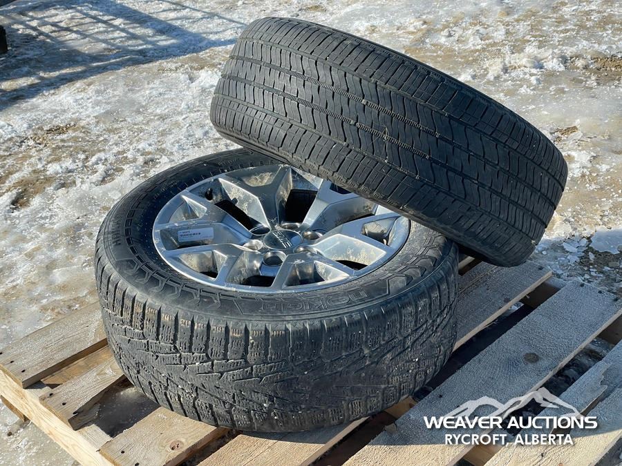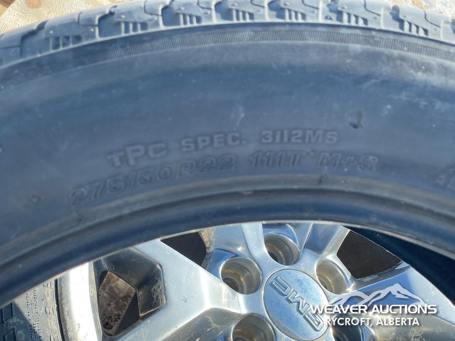 Specifications: (1) NOKIAN 275/55R20 TIRE W/GMC RIM, (1) BRIDGESTONE 275/50R22 TIRE