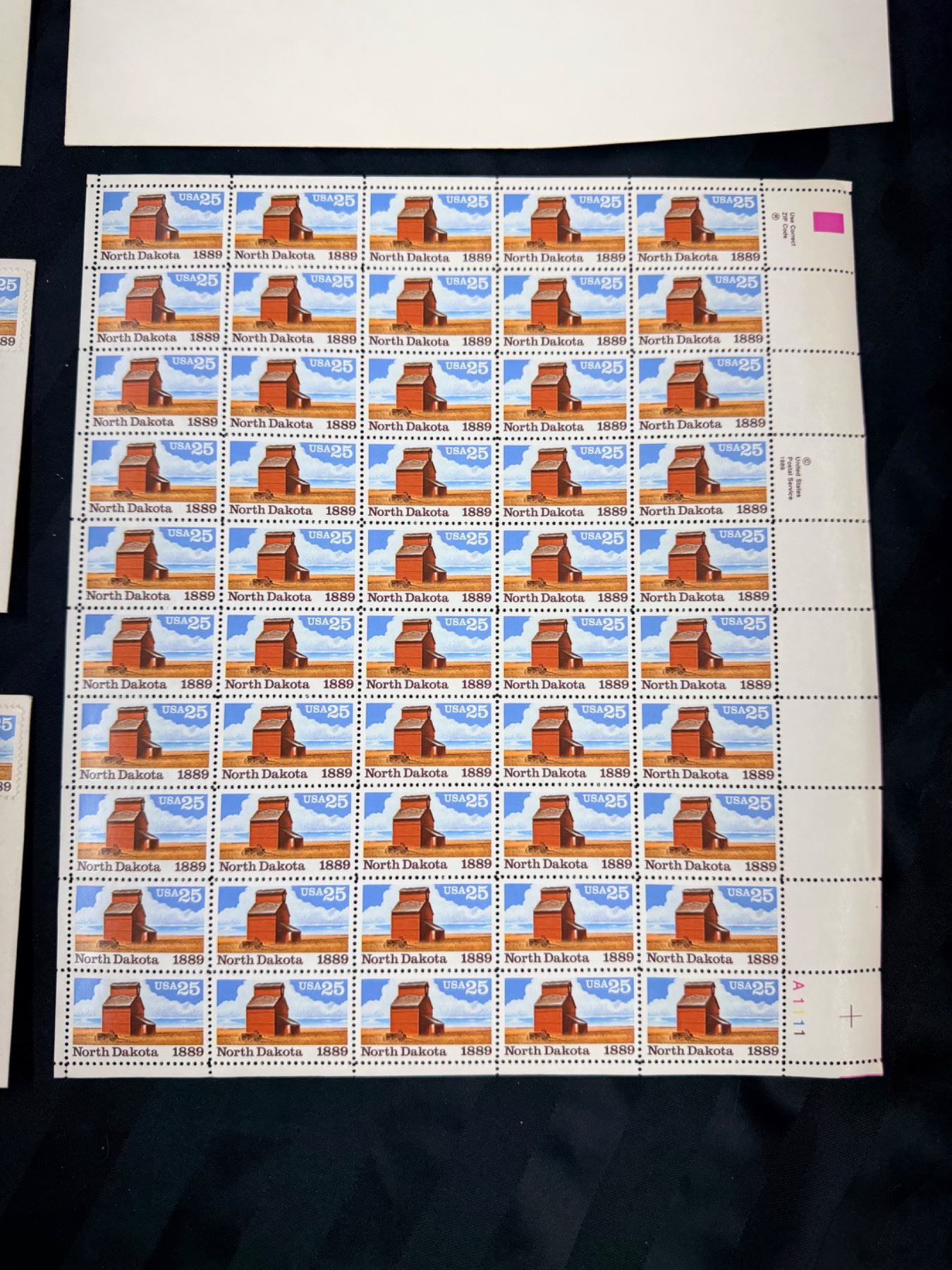 Lot 14 FOUR ENVELOPES (FIRST DAY COVERS) AND ONE FULL SHEET OF NORTH DAKOTA COMMEMORATIVE POSTAGE STAMPS