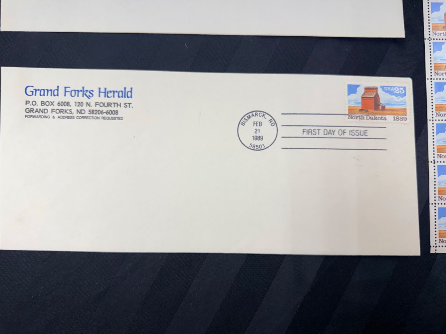 THE COVERS ARE ADDRESSED FROM THE GRAND FORKS HERALD AND BEAR A BISMARCK, ND POSTMARK FROM FEBRUARY 21, 1989, COMMEMORATING THE NORTH DAKOTA CENTENNIAL