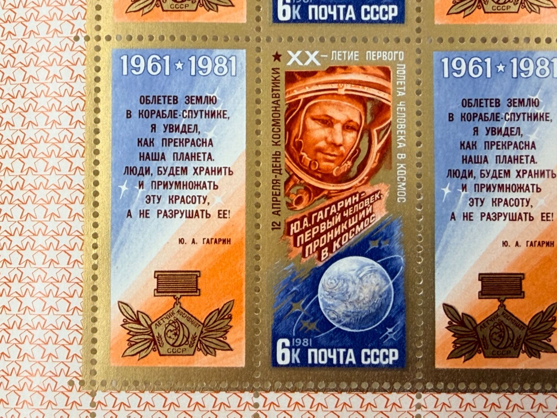 Lot 18 SOVIET UNION COLLECTIBLE STAMPS DEPICTING SPACE EXPLORATION MILESTONES COMMEMORATING YURI GAGARIN AN