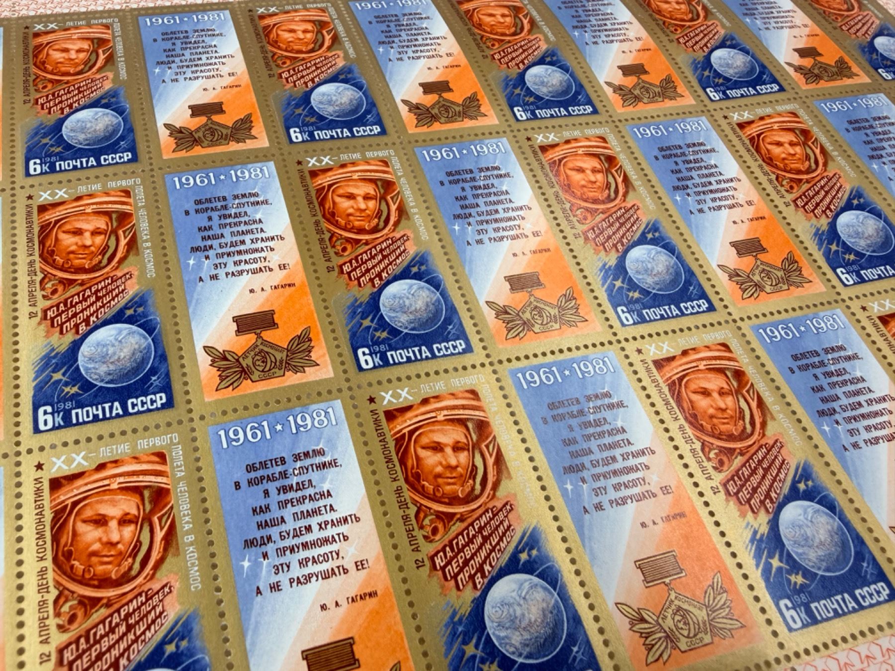 SOVIET UNION COLLECTIBLE STAMPS DEPICTING SPACE EXPLORATION MILESTONES COMMEMORATING YURI GAGARIN AND THE VOSTOK 1 MISSION (INTERNAL REFERENCE: A)