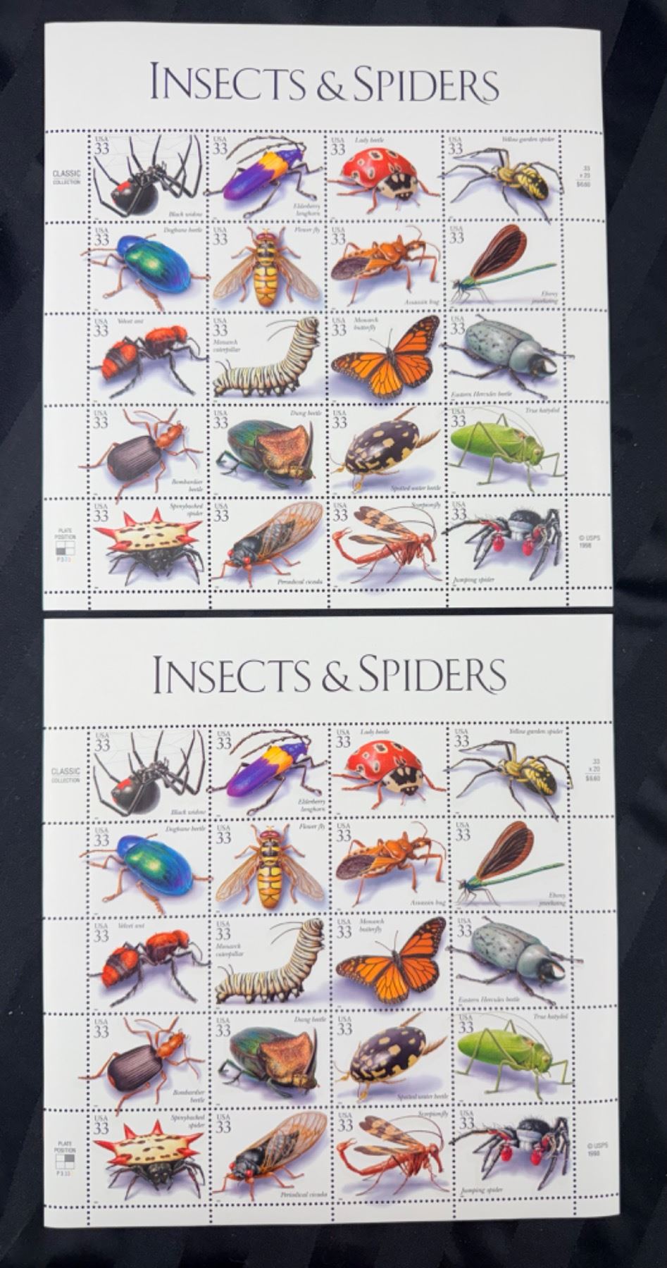 Lot 23 SHEETS OF THE 1999 "INSECTS & SPIDERS" COMMEMORATIVE STAMPS ISSUED BY THE USPS
