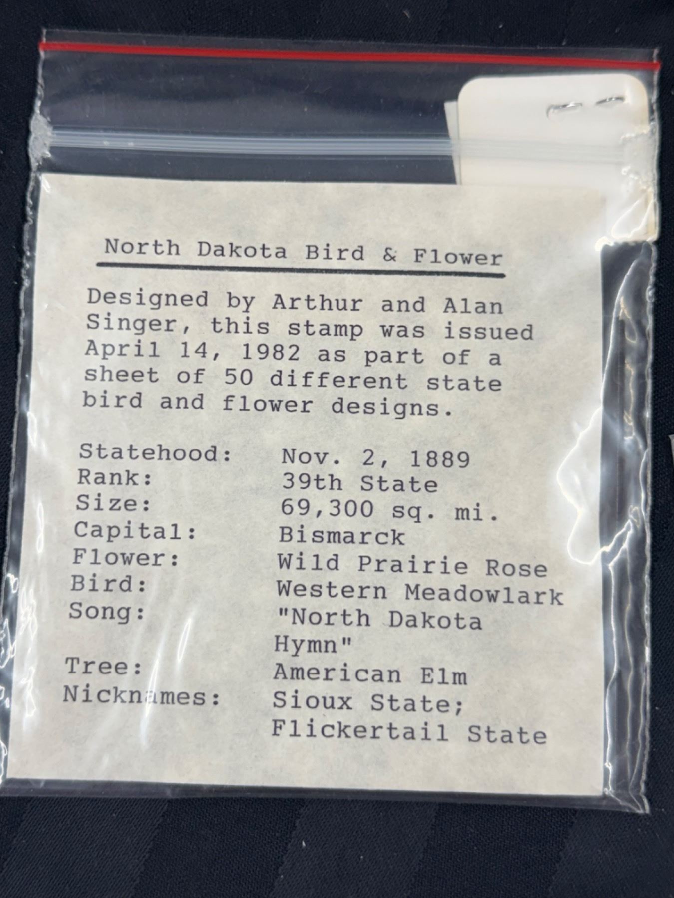 Lot 26 COLLECTION OF VINTAGE UNITED STATES POSTAGE STAMPS COMMEMORATING NORTH DAKOTA