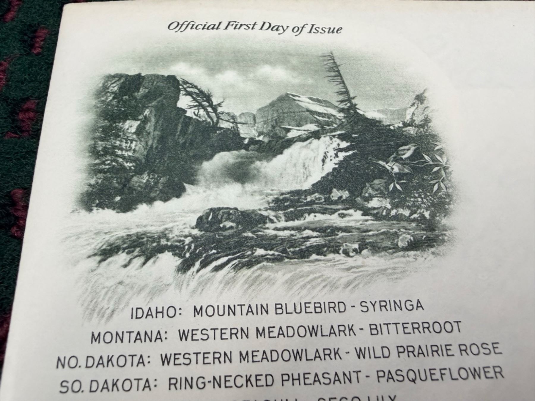 Lot 41 FIRST DAY OF ISSUE STATE BIRDS AND FLOWERS OF THE UNITED STATES SERIES: NORTHWEST STATES (INTERNAL R