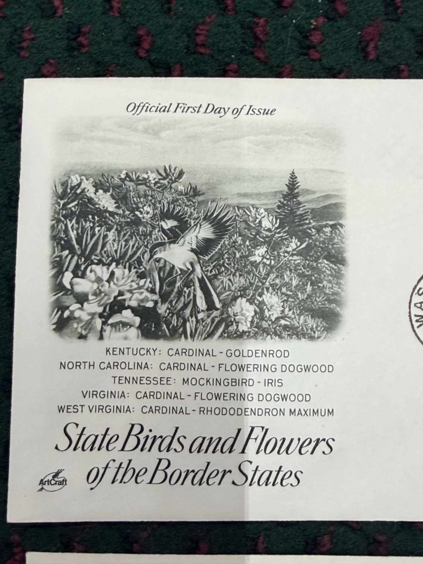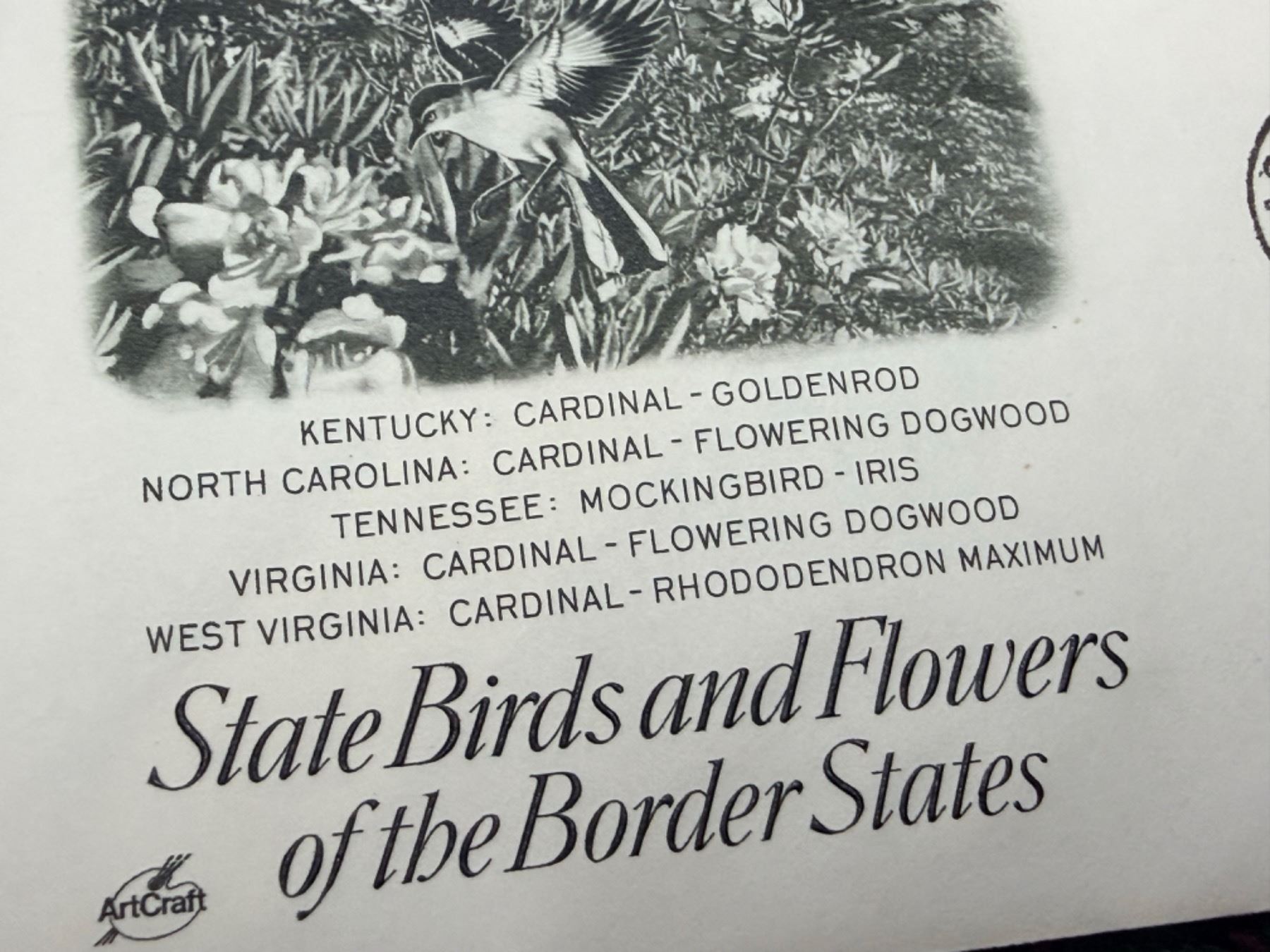 FIRST DAY OF ISSUE STATE BIRDS AND FLOWERS OF THE UNITED STATES SERIES: BORDER STATES (INTERNAL REFERENCE: 28)