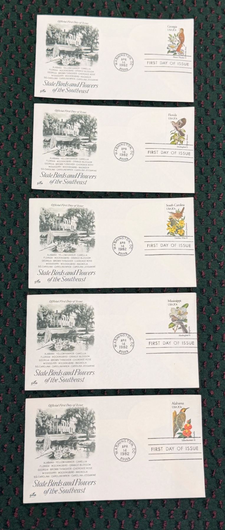 Lot 48 FIRST DAY OF ISSUE STATE BIRDS AND FLOWERS OF THE UNITED STATES SERIES: SOUTHEAST STATES (INTERNAL R