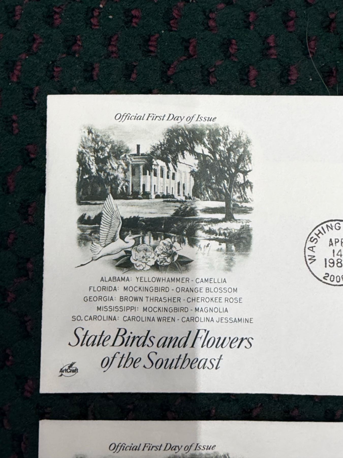 FIRST DAY OF ISSUE STATE BIRDS AND FLOWERS OF THE UNITED STATES SERIES: SOUTHEAST STATES (INTERNAL REFERENCE: 29)