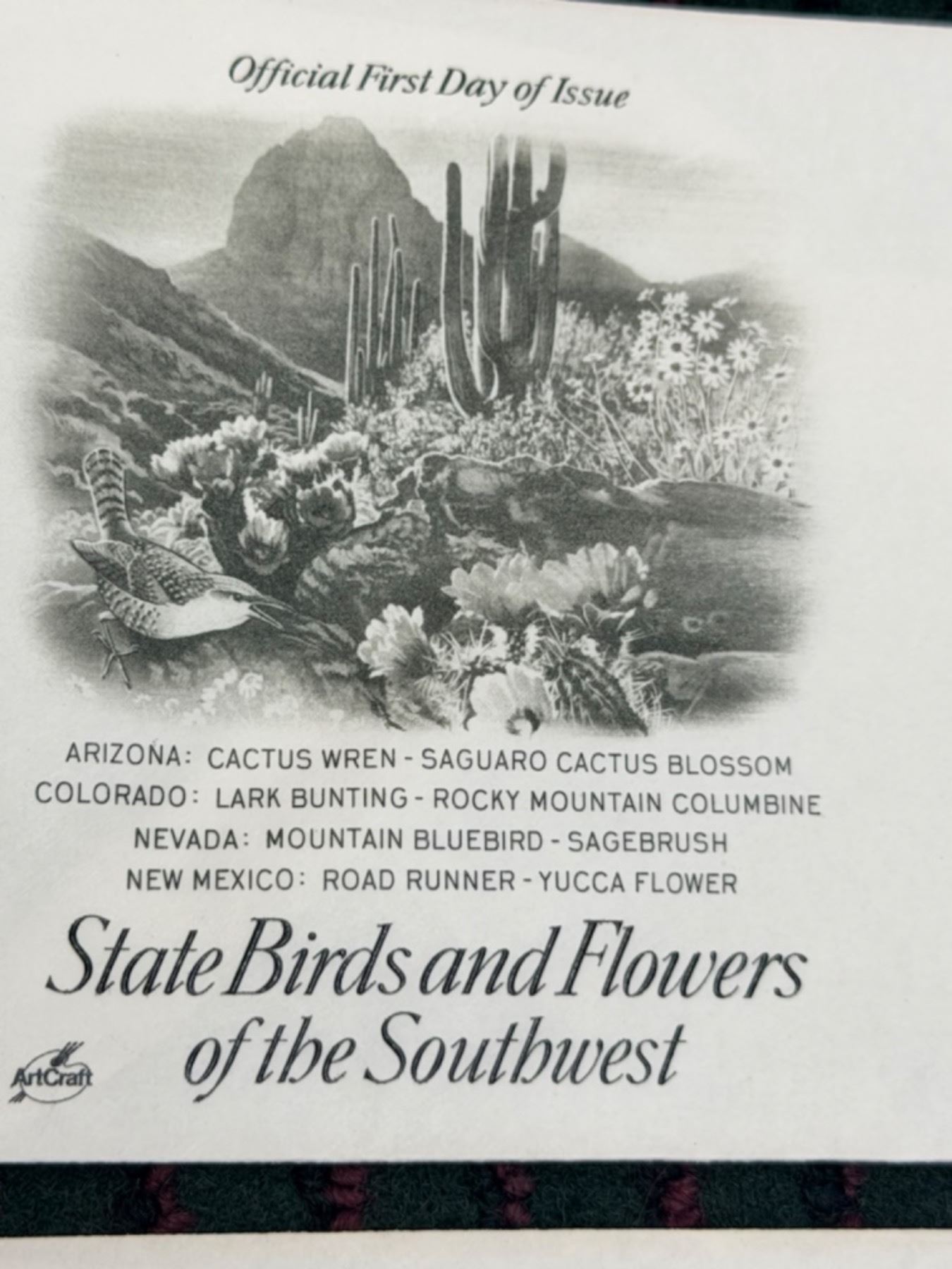 FIRST DAY OF ISSUE STATE BIRDS AND FLOWERS OF THE UNITED STATES SERIES: SOUTHWEST STATES (INTERNAL REFERENCE: 31)