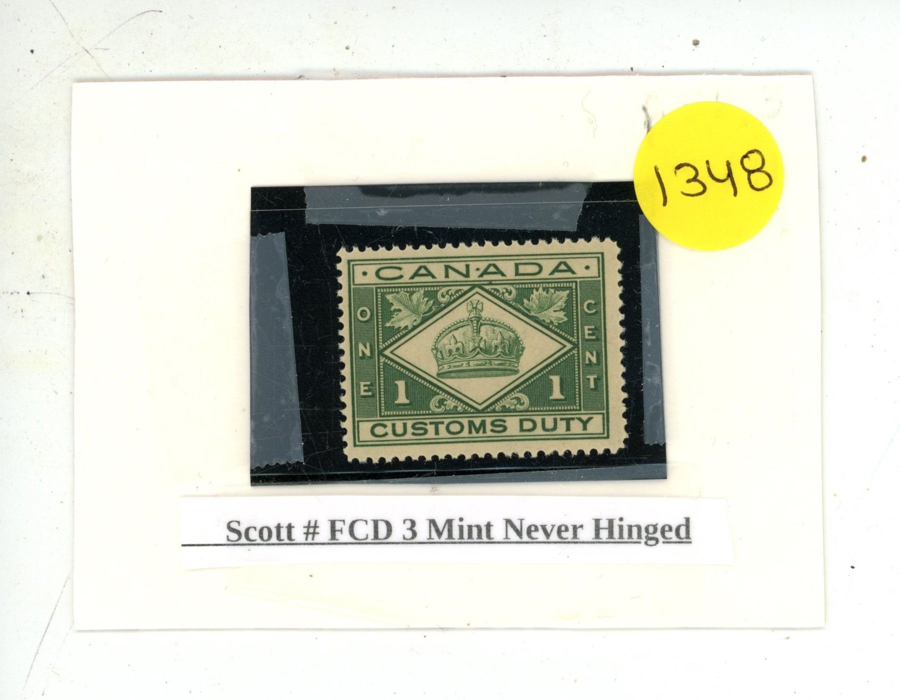 Lot 1348 Scott #FCD 3 Mint Never Hinged.