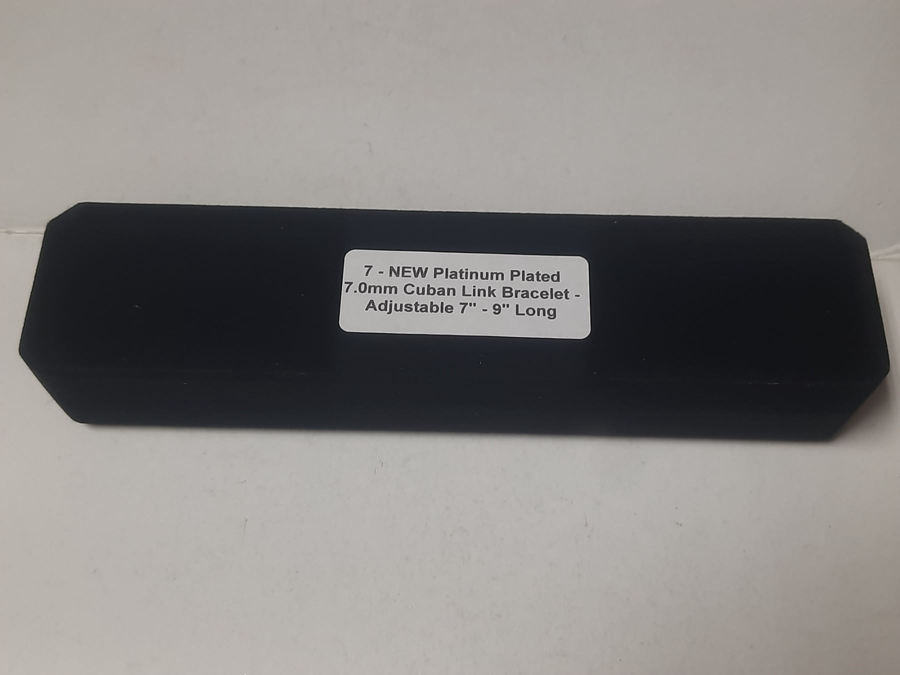 NEW Platinum Plated 7.0mm Cuban Link Bracelet - Adjustable 7" - 9" Long