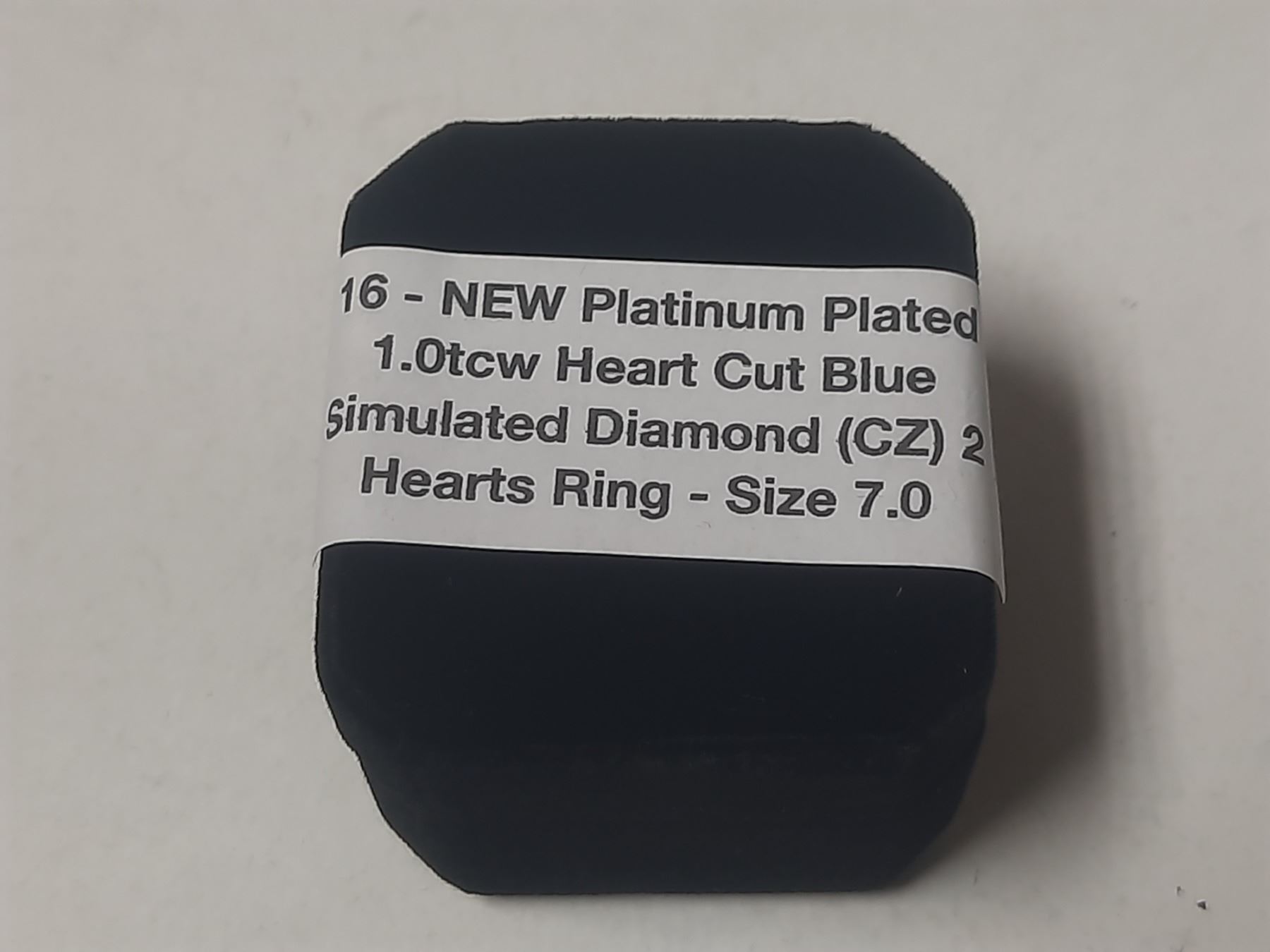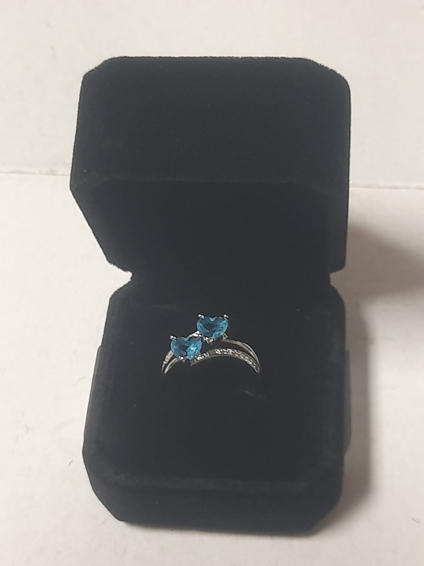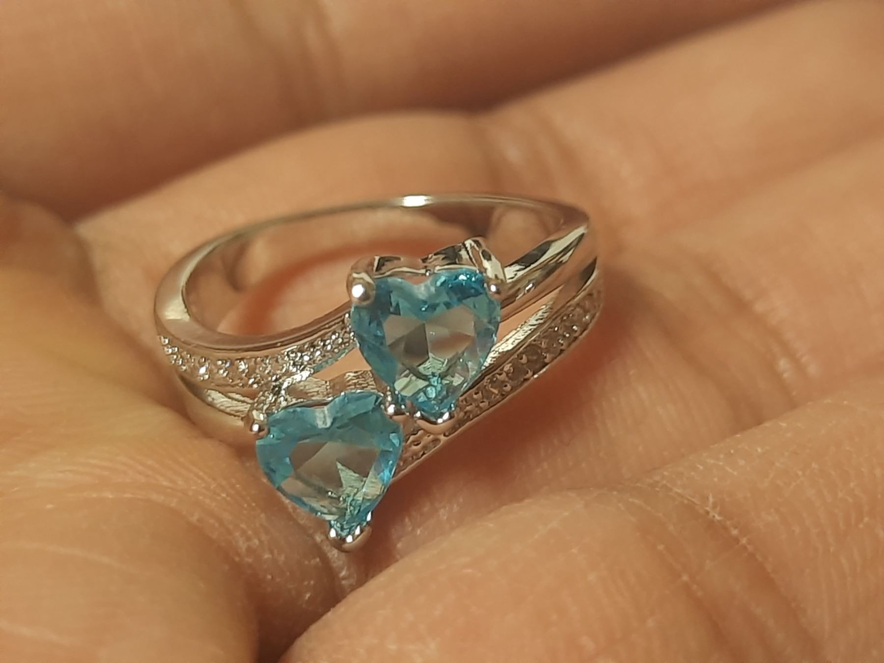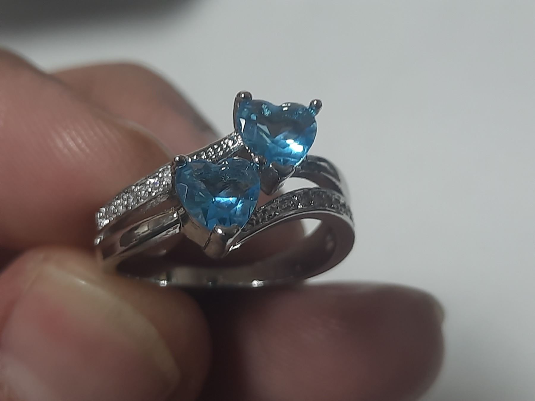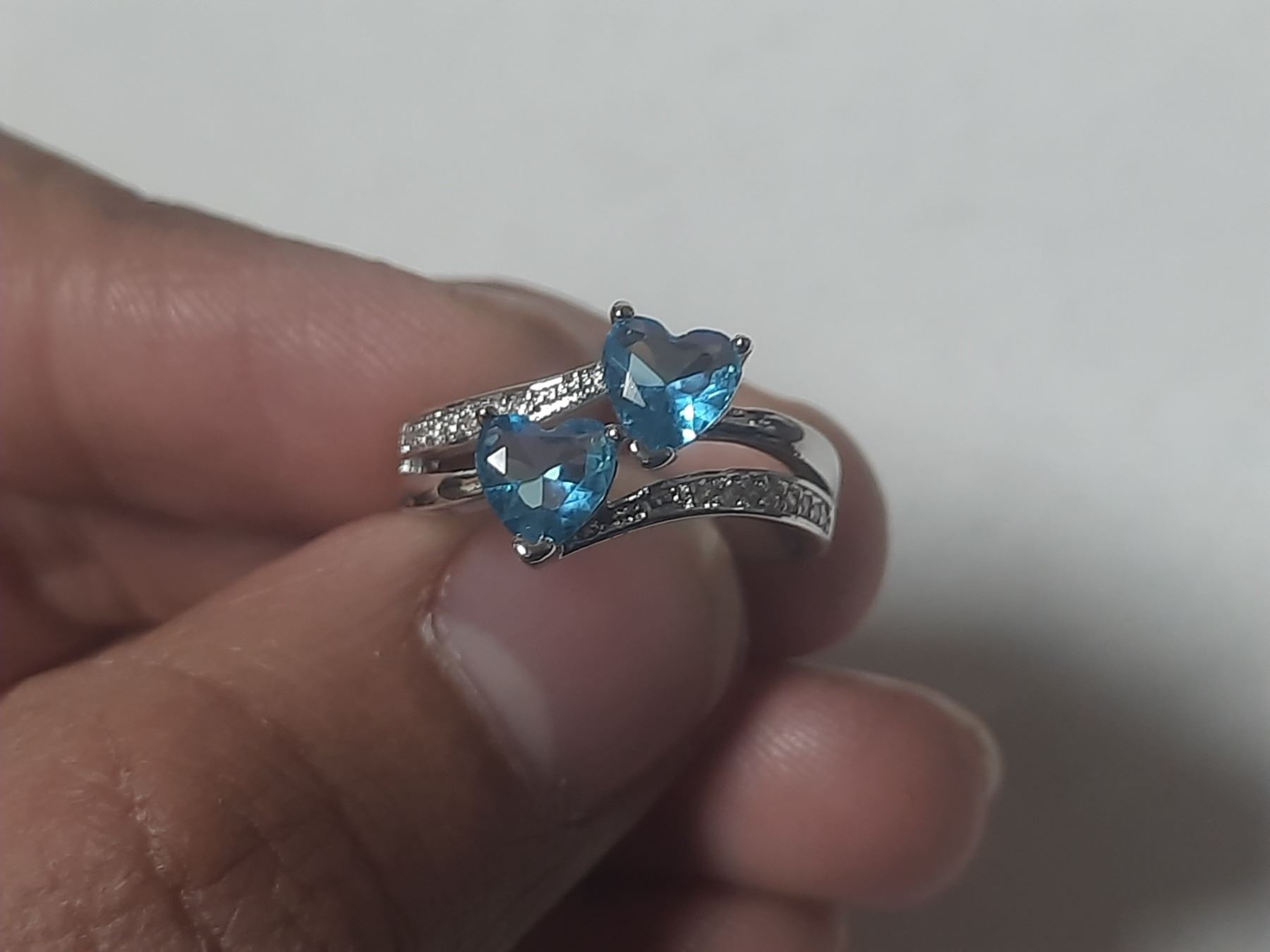 NEW Platinum Plated 1.0tcw Heart Cut Blue Simulated Diamond (CZ) 2 Hearts Ring - Size 7.0