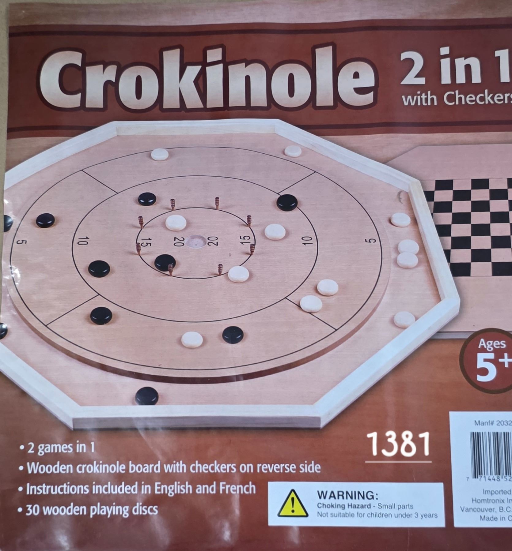 Lot 1381 New never used crokinole 2 in 1 board with checkers
