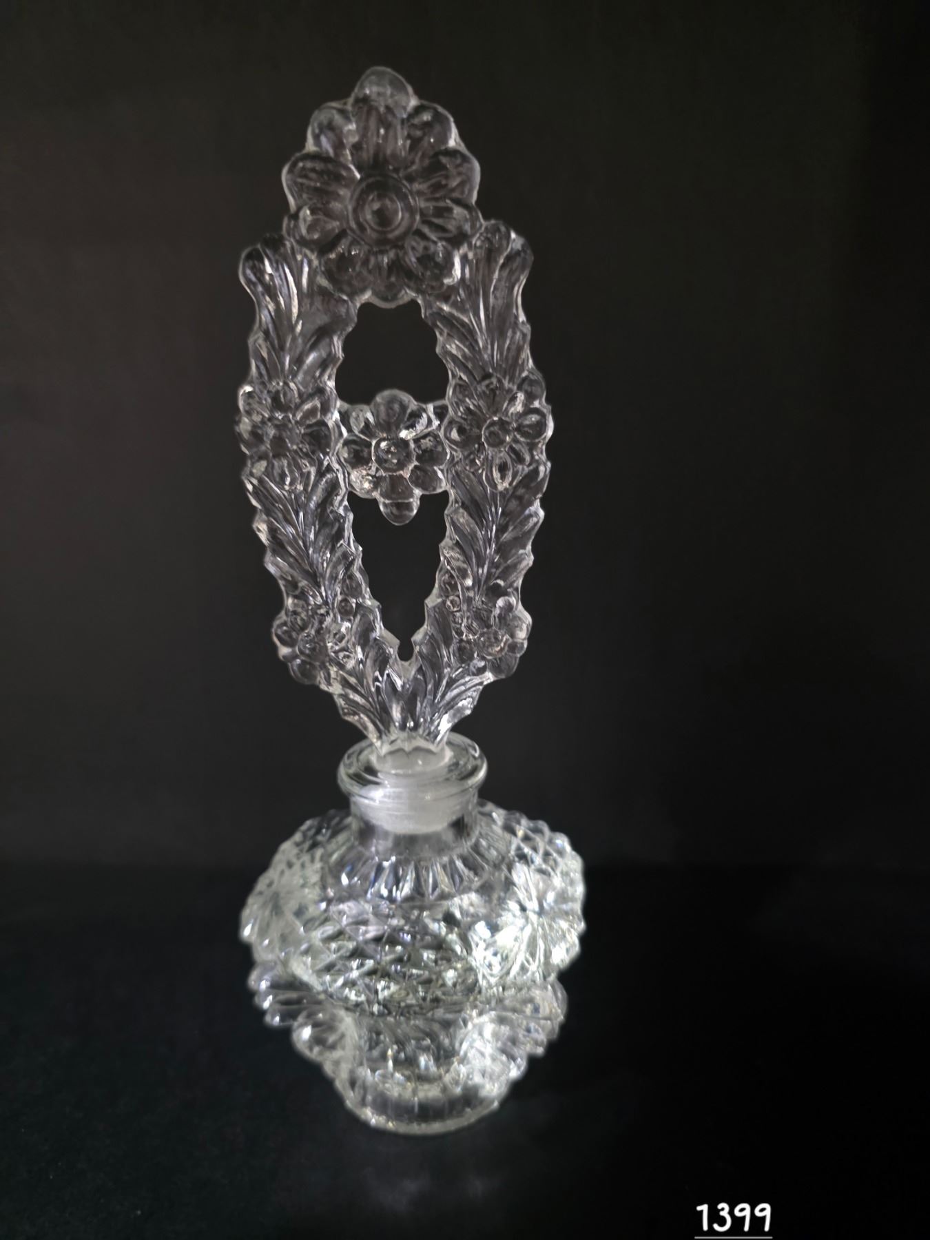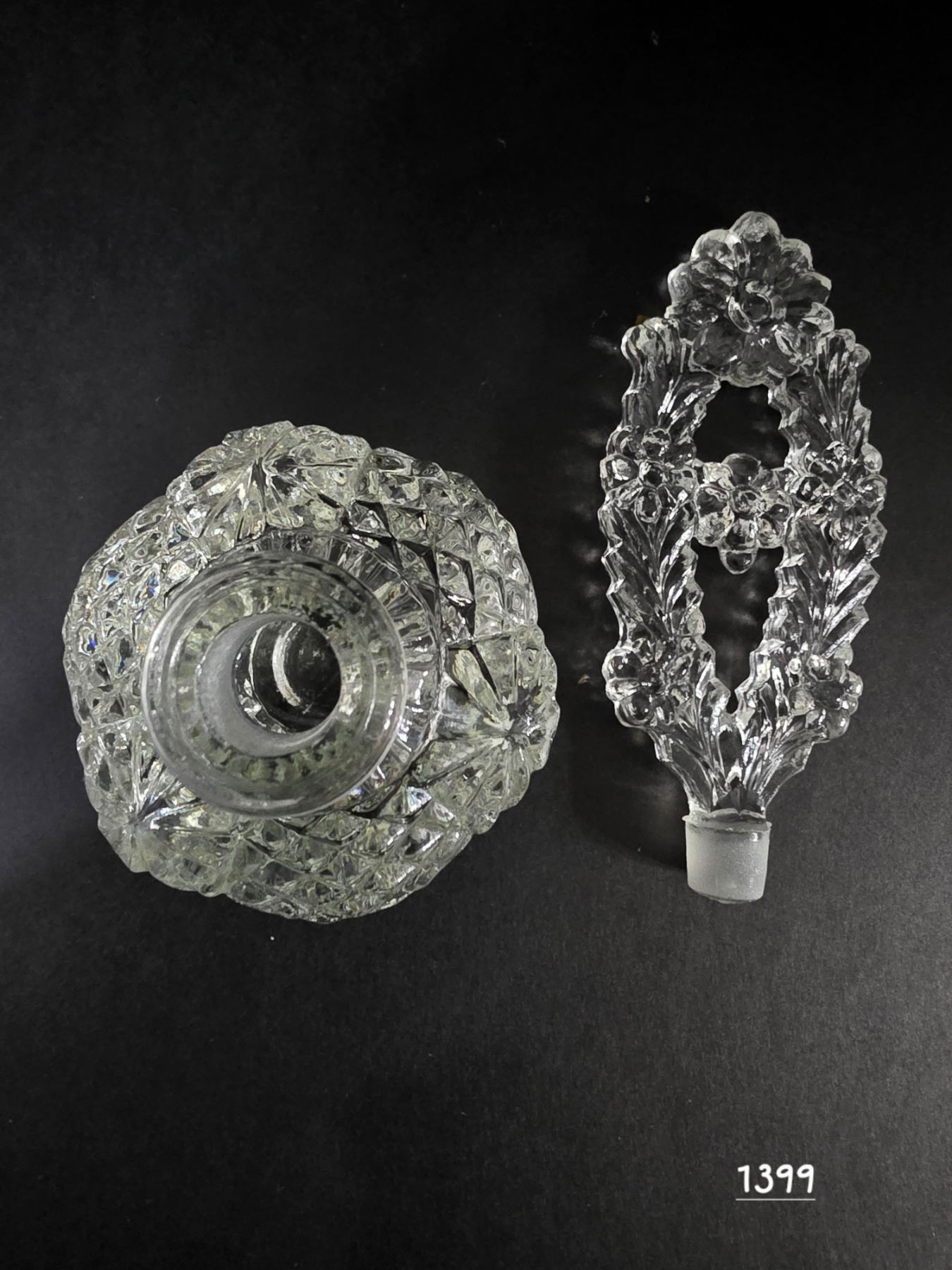 Lot 1399 Vintage pressed clear glass flower themed perfume bottle