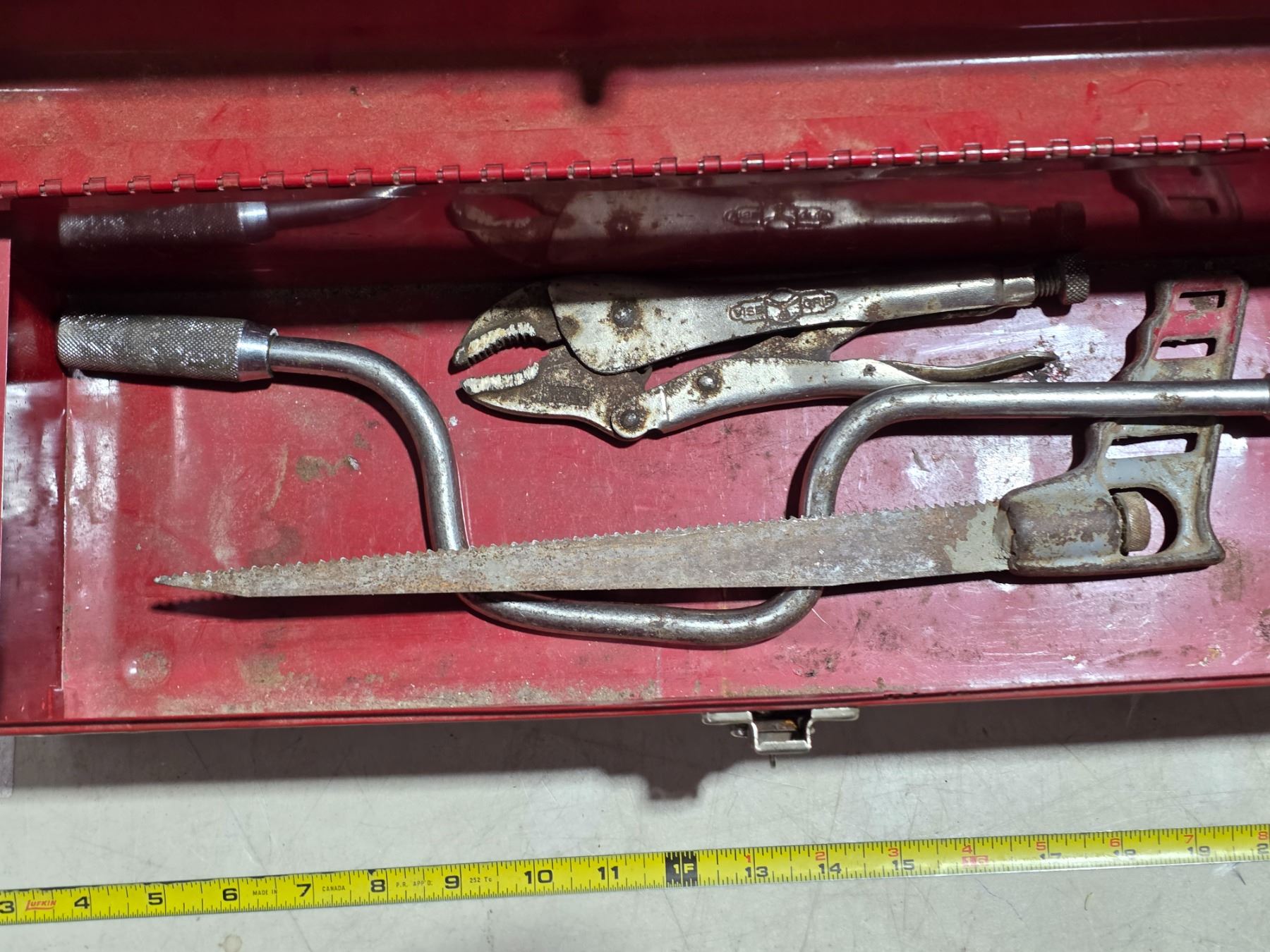 Small red tool box some tools inside