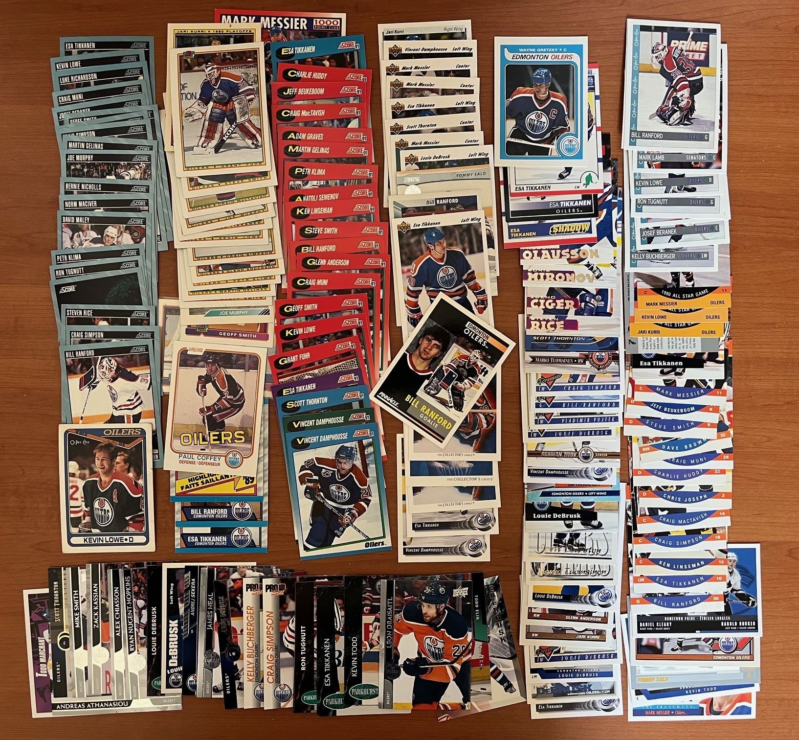 Edmonton Oilers lot of 140ish different hockey cards. Ranford. DeBrusk. Messier. Mixed Brands. Mixed Years.