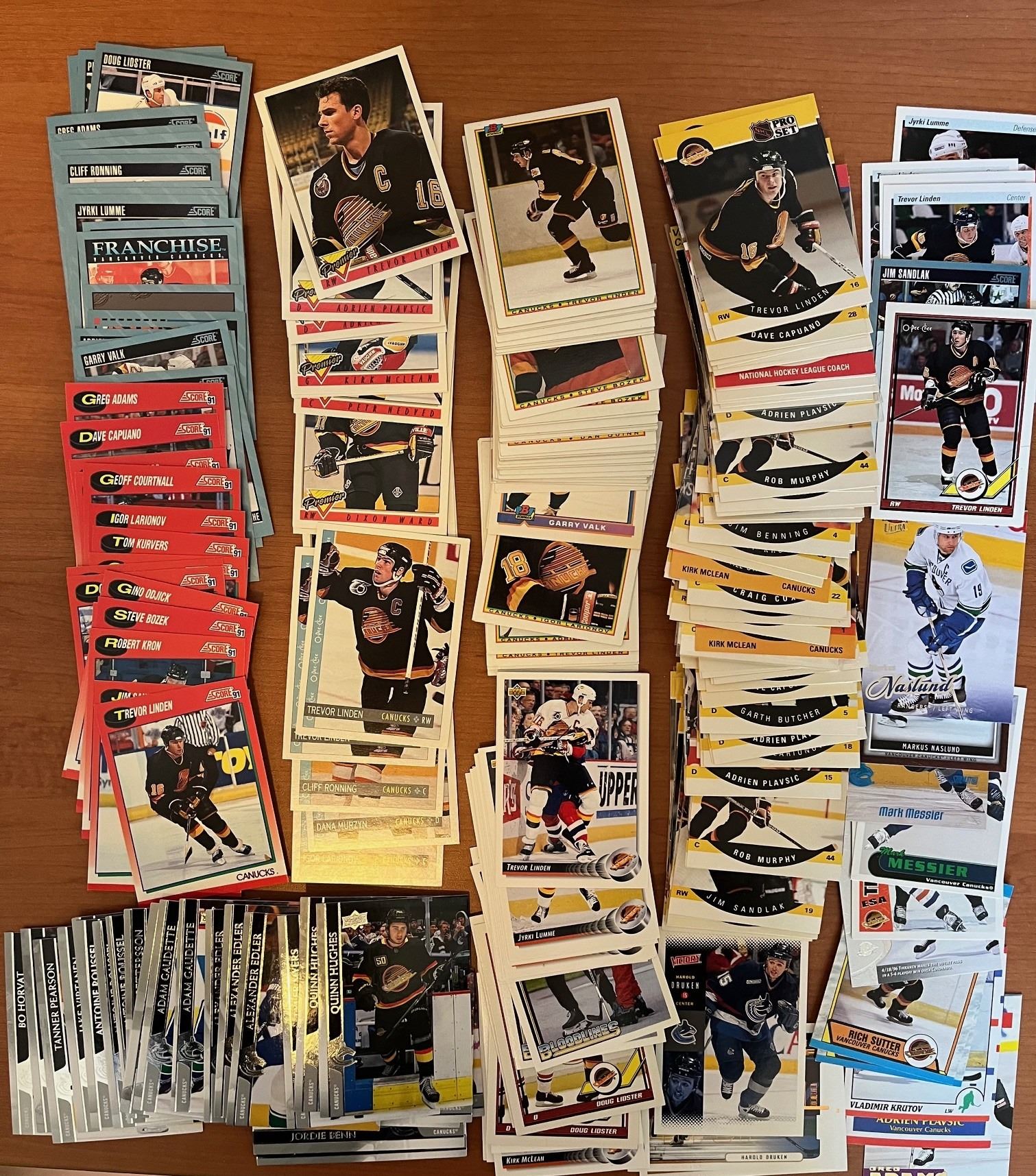Vancouver Canucks lot of 200+ hockey cards. Trevor Linden. Bure. Mixed Brands. Mixed Years. Some duplicates.