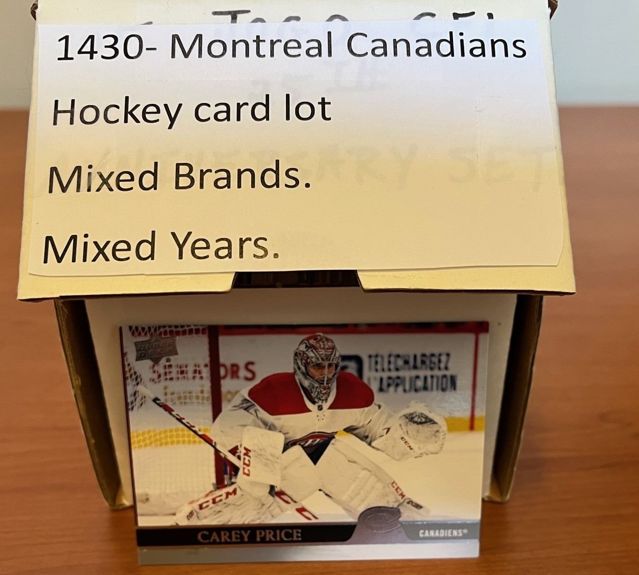 Lot 1430 Montreal Canadians hockey card lot. 200 count box. Mixed Brands. Mixed Years. Carey Price. Patrick